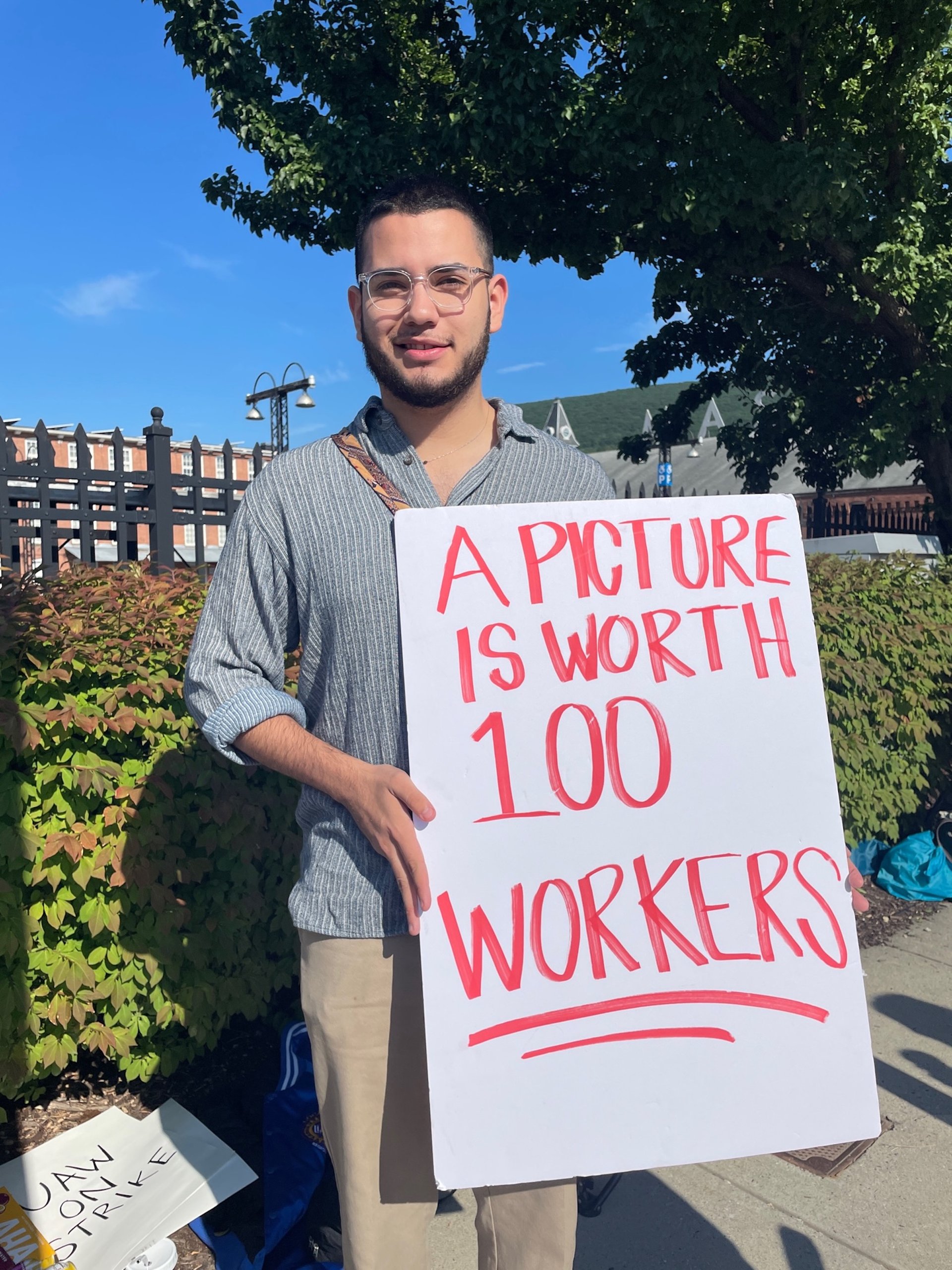A member of the Masschusetts Museum of Contemporary Art's union during the 19 August strike Courtesy UAW