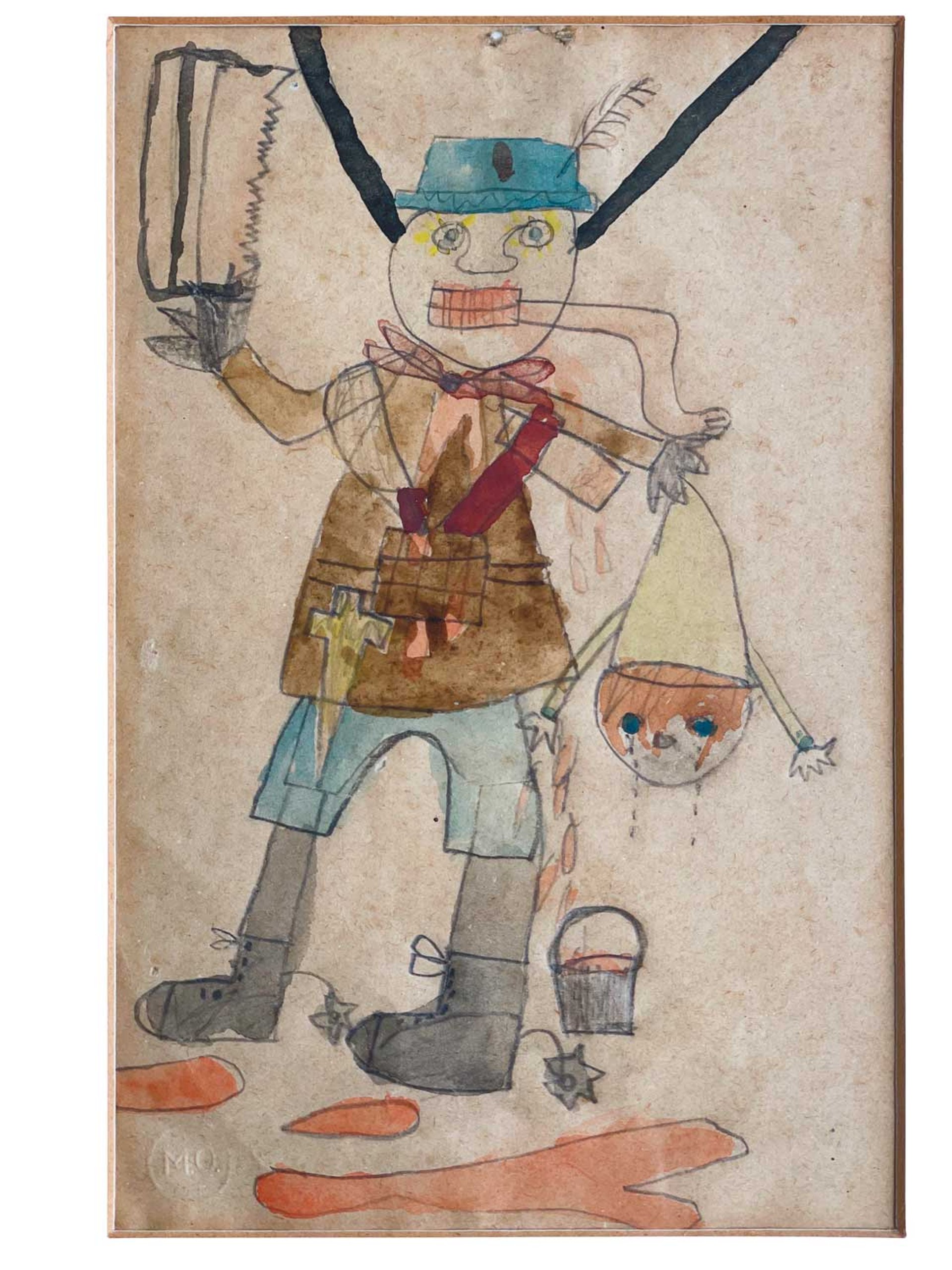 A pencil-and-watercolour drawing, Kinderfressender Teufel (child-devouring devil, around 1923), which Oppenheim created when she was around ten years old © 2022, ProLitteris Züirch
