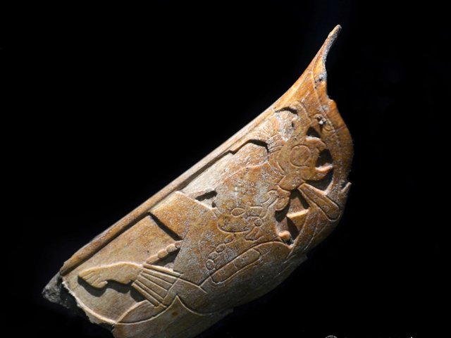 An earring of carved shell found inside a mound at the El Naranjo site Courtesy National Institute of Anthropology and History