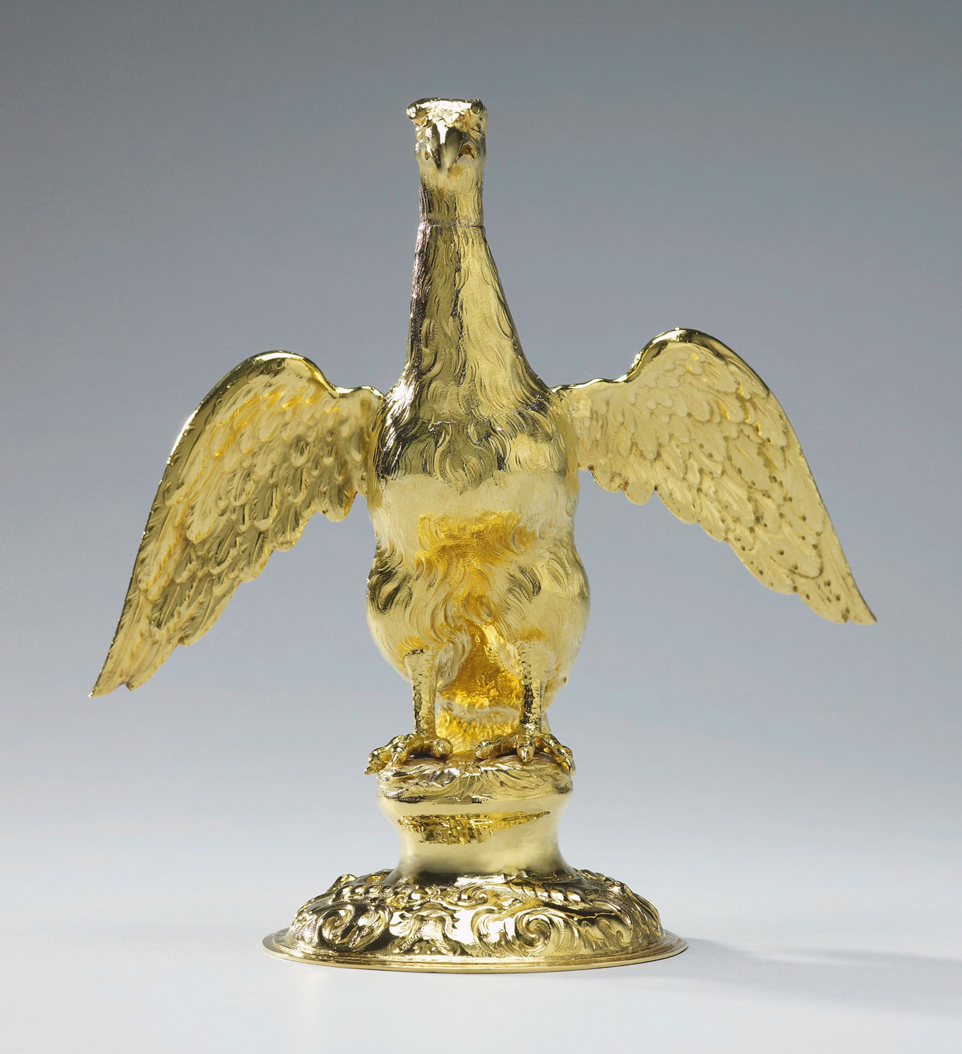The ampulla, 1661, in the form of a gold eagle, which holds the anointing oils for the coronation Royal Collection Trust / © His Majesty King Charles III 2023