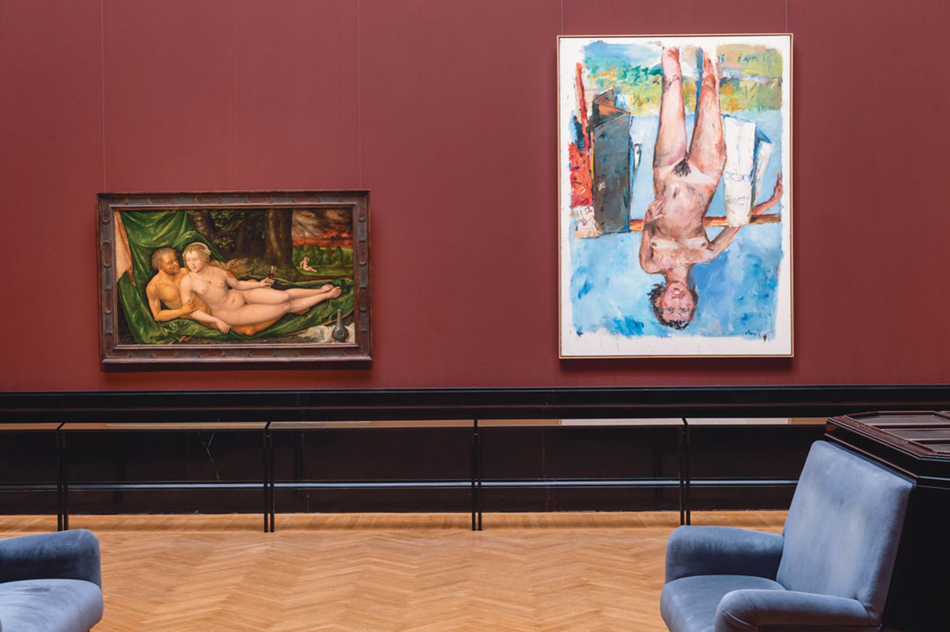 Albrecht Altdorfer’s Lot and his Daughters alongside Baselitz's Finger Painting – Female Nude (1972) Louisiana Museum of Modern Art. Donation: Georg Baselitz. © Georg Baselitz 2023