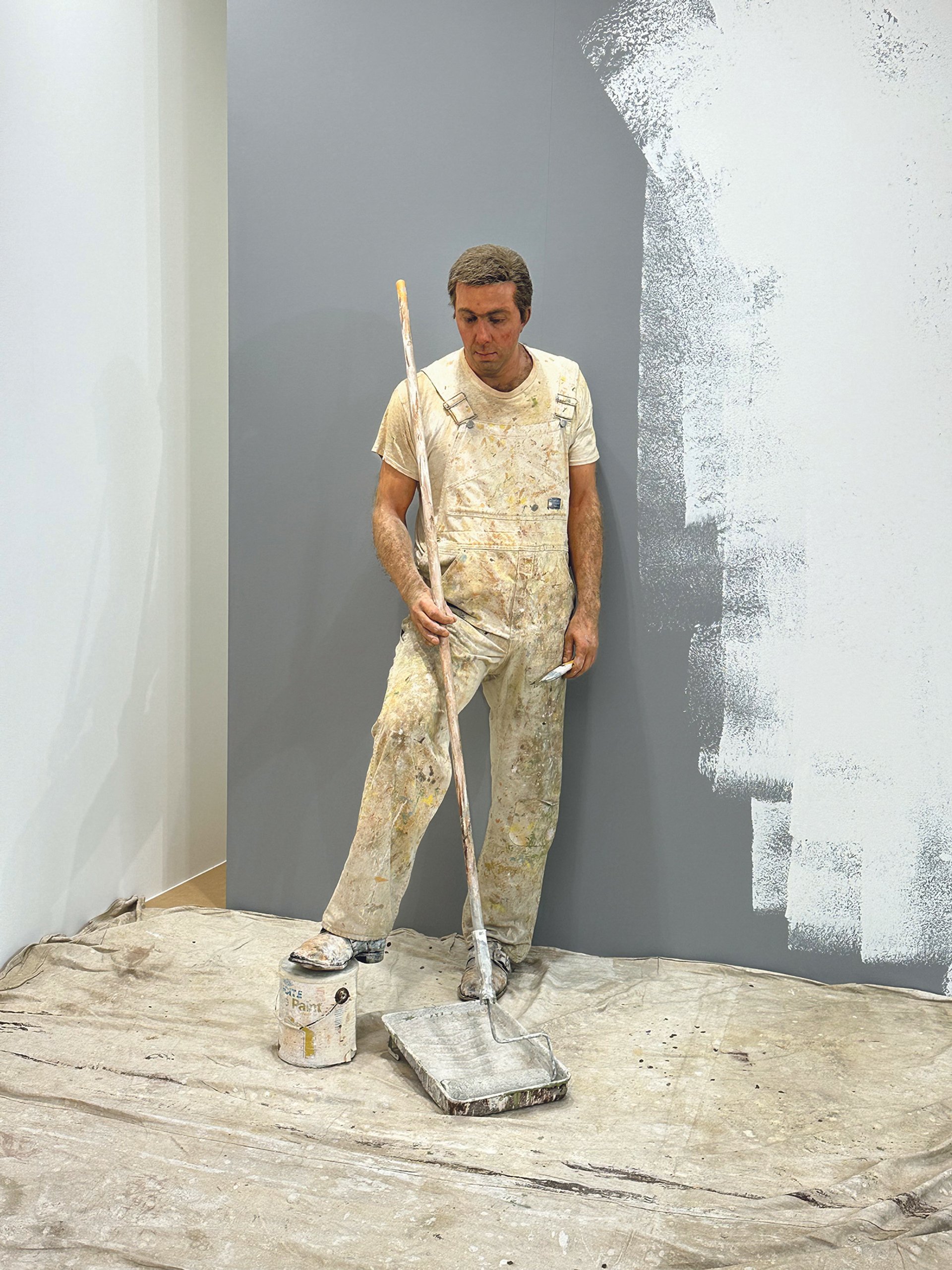 Fondation Beyeler’s stand at Art Basel is a talking point with its lifelike depiction of a workman with a paint roller standing in front of a half-painted wall. This hyper-real piece by the late US artist Duane Hanson, shown alongside an unfinished painting by Picasso, is foxing visitors who are taken aback by the ultra-authentic mottled skin and brushed hair. A quick straw poll among visitors pondering the piece came back with a result endorsing Hanson’s creation, with most respondents saying that the work looks just like an authentic human being. But one French collector was less than convinced. “He’s not blinking or breathing,” she exclaimed. Zut alors!