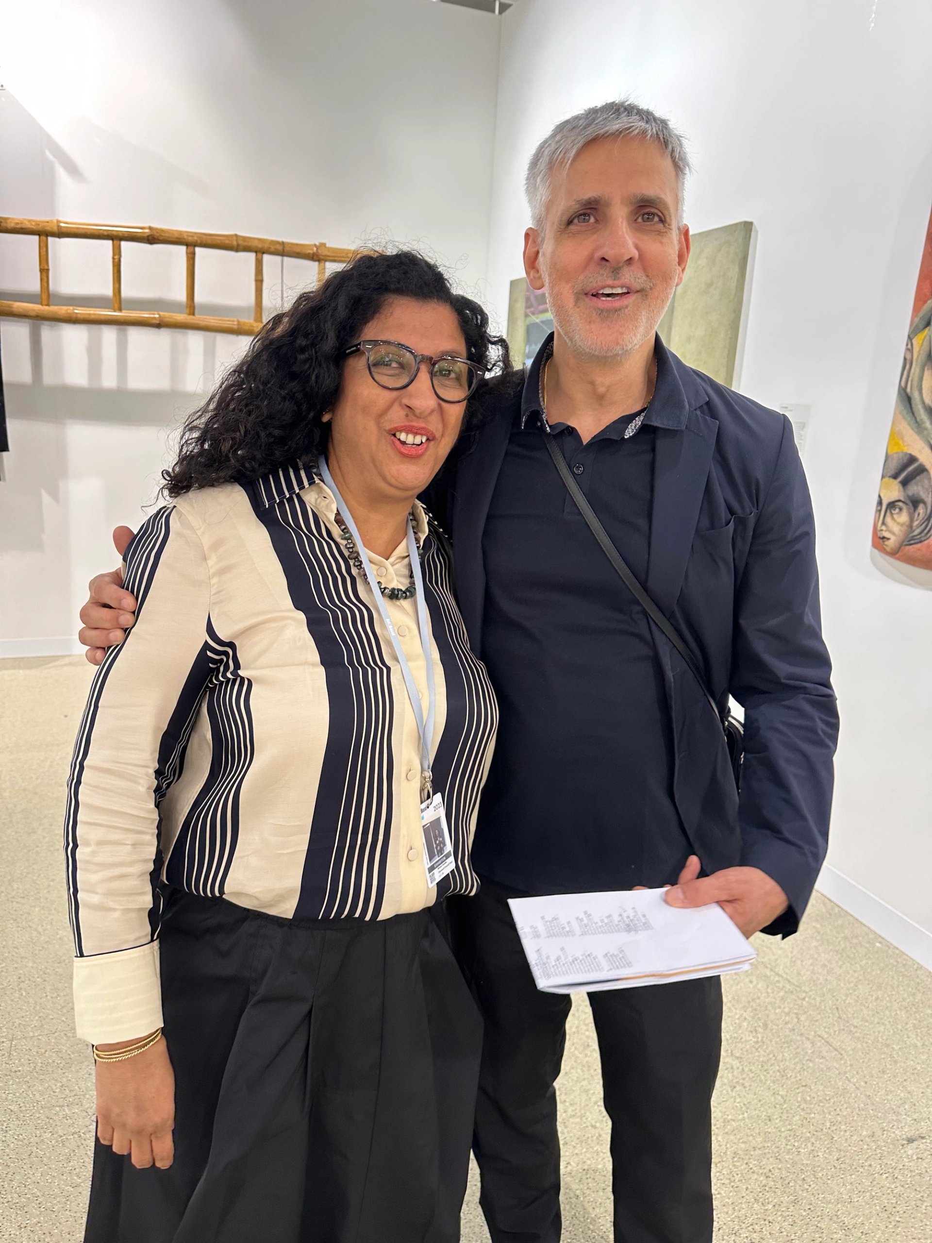 Adriano Pedrosa, the curator of the next Venice Biennale (pictured with Shireen Gandhy of Chemould Prescott Road gallery), popped into Art Basel this week as he makes his way around the world before the exhibition launches next April. “I’ve been in Jakarta, Manila, Singapore and Hong Kong,” he tells us. (We assume Pedrosa was also scouting out prospective candidates for his 2024 selection.) “The timeframe is really challenging” he adds.