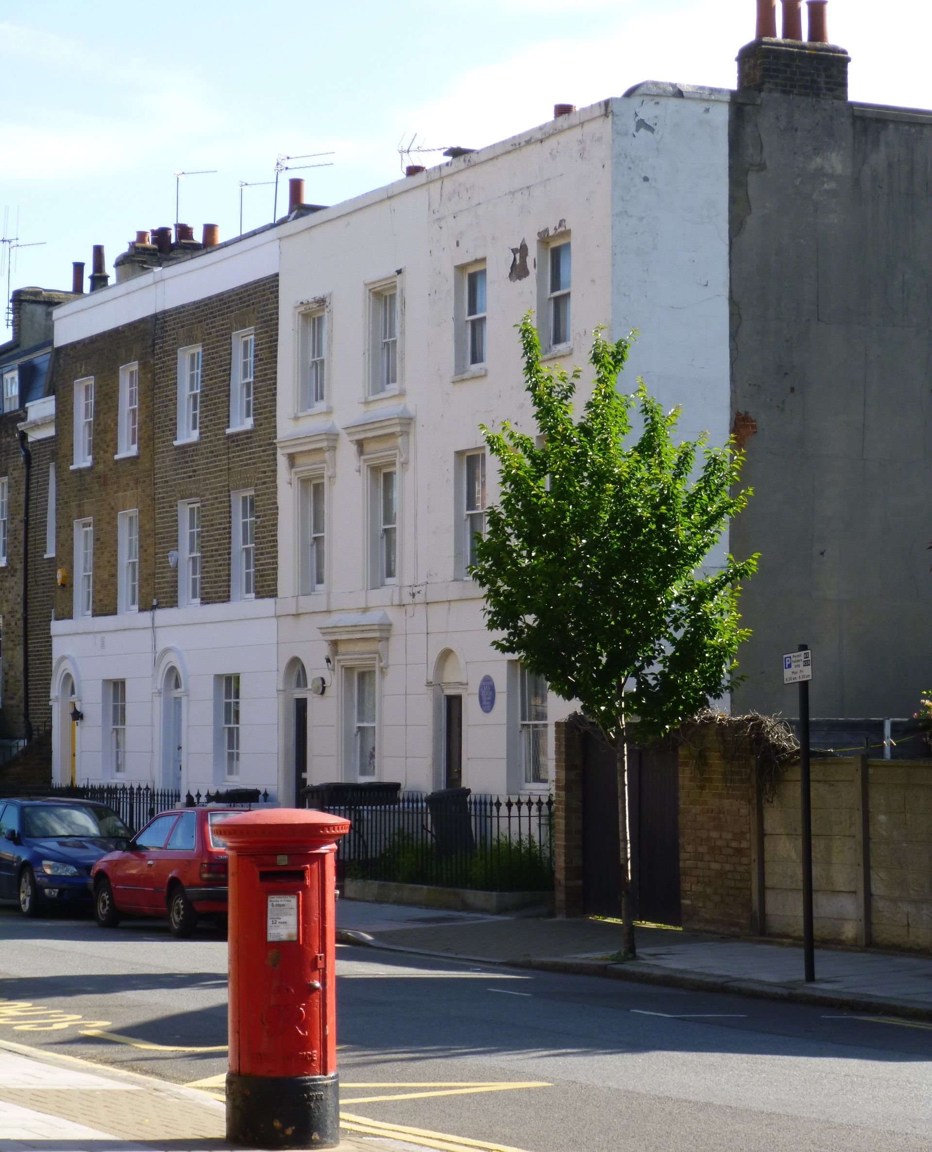 Hackford Road, with number 87 on the right (photographed in 2013, before the building's restoration). Van Gogh's room was on the top floor