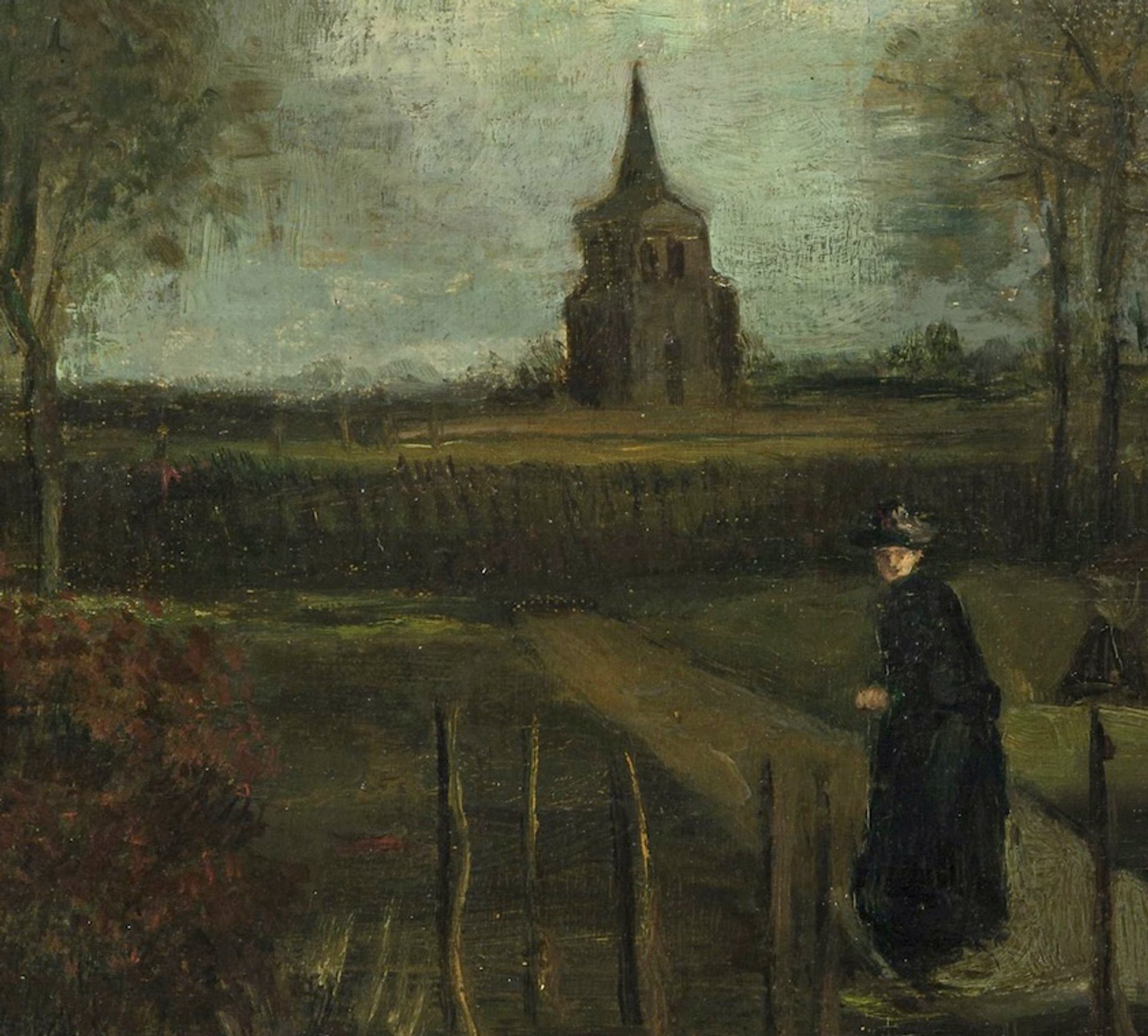 The woman in black in the painting remains a mystery. If an actual person, she seems to be young or middle aged, so it is unlikely to be Vincent’s elderly mother Anna. It could well be one of his sisters.