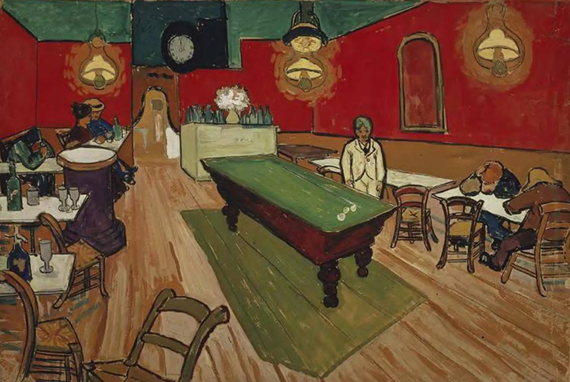 Vincent described the haunt in a letter to his brother Theo: “It’s what they call a ‘night café’ here (they’re quite common here), that stay open all night. This way the ‘night prowlers’ can find a refuge when they don’t have the price of a lodging, or if they’re too drunk.”