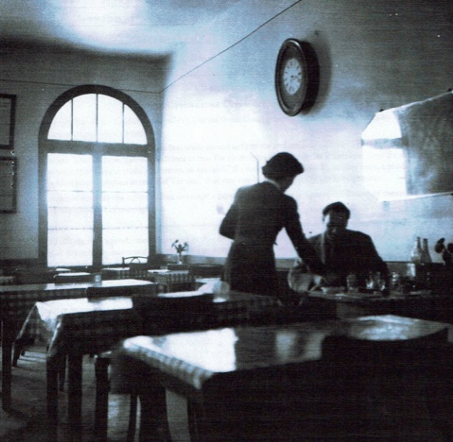 Peter Senn’s photograph of a café in Arles, with the clock which is said to have come from the Café de la Gare/Hotel Terminus