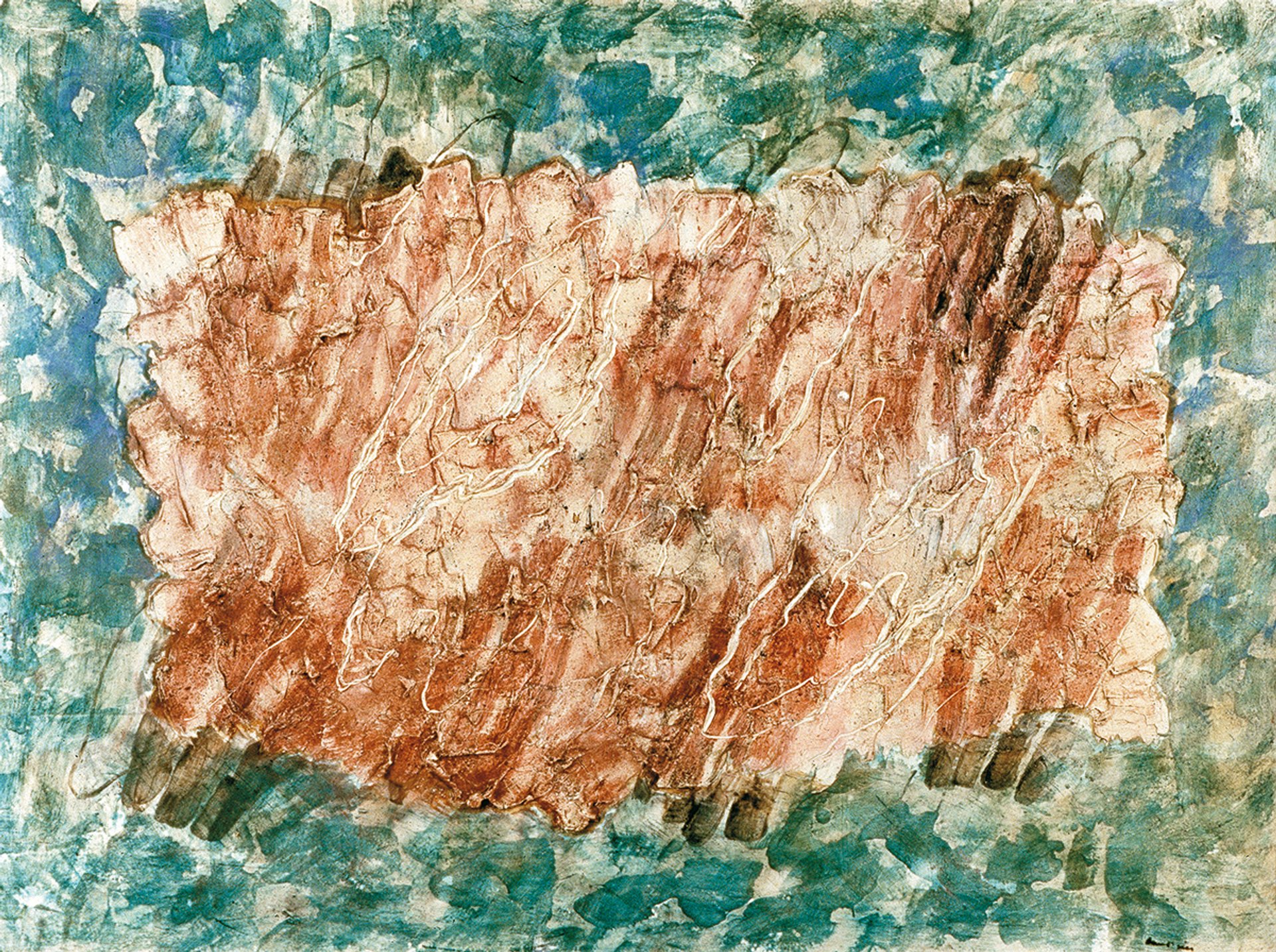 His most famous series, Hostages, was created in and outside Paris during the Second World War; colours and lines (a contour? a profile?) were laid over thickly worked, impasted grounds suggesting flesh, with a disturbing eroticism. These so-called hautes pâtes (literally “raised pastes”), which together with their titles imply bodies or presences, vibrate with the horror he apparently witnessed. La juive and Sarah (both 1943) pay tribute to Jewish female victims of atrocities, before the focus on Hostage Heads. (Fautrier’s father may, indeed, have been Jewish.) The Hostages series was reprised in 1957, reacting to the Soviet invasion of Budapest. Fautrier’s later work played on striated signs over hautes pâtes in pastel colours, where happier titles, often based on jazz tunes, offer clues to mood or meaning (I’m Falling in Love, 1957).