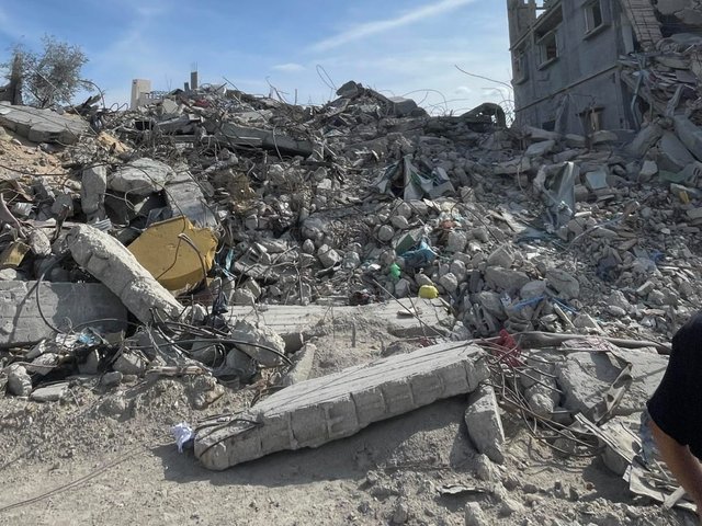 She has tried to salvage parts of her collection from the wreckage. “I continue to search in the rubble; perhaps I will find the remains of my museum,” she says. Despite developing chest pains and asthma since the bombardment, the 61-year-old continues to assist the displaced in the city. Her latest initiative is to find a cost-effective way to make tents for those in need, which are scarce due to the difficulty of obtaining them from aid agencies and the high market prices.