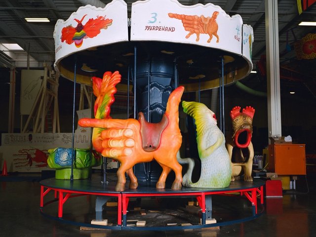 Even though visitors today can’t actually go on the rides, tickets to Luna Luna in its new incarnation in a downtown Los Angeles warehouse have been selling for $30 and upwards, or as much as $85 for a “moon pass” that includes parking and entry to Salvador Dalí’s hall of mirrors and David Hockney’s stage-set-like forest pavilion. And its flashy, carnival-barker-style website trumpets Luna Luna as “the world’s first and only art amusement park”. Next up, Drake’s group plans to commission contemporary artists to create working rides that could tour internationally—the original goal of Luna Luna’s founder, the Austrian artist-musician-impresario André Heller.