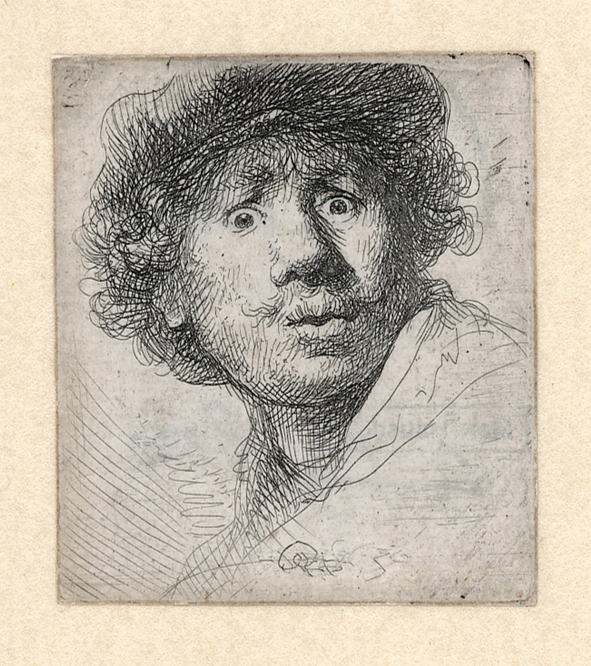 A 1690 study of surprise, one of several self-portrait sketches in which Rembrandt was experimenting with facial expressions Rembrandt House Museum, Amsterdam