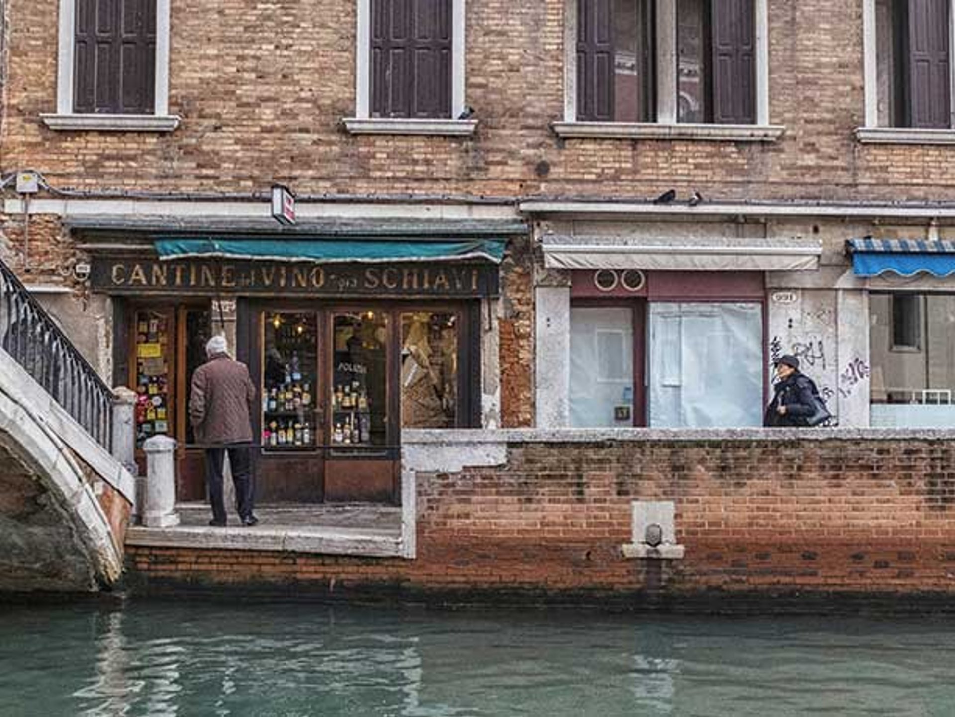 At Bottegon da Schiavi (also known as Cantine del Vino già Schiavi) in Rio di San Trovaso, a five-minute walk from Gallerie dell’Accademia and Zattere. Just in front of squero di San Trovaso, a typical Venetian factory where gondolas are built and repaired, and one of the very few still in operation.