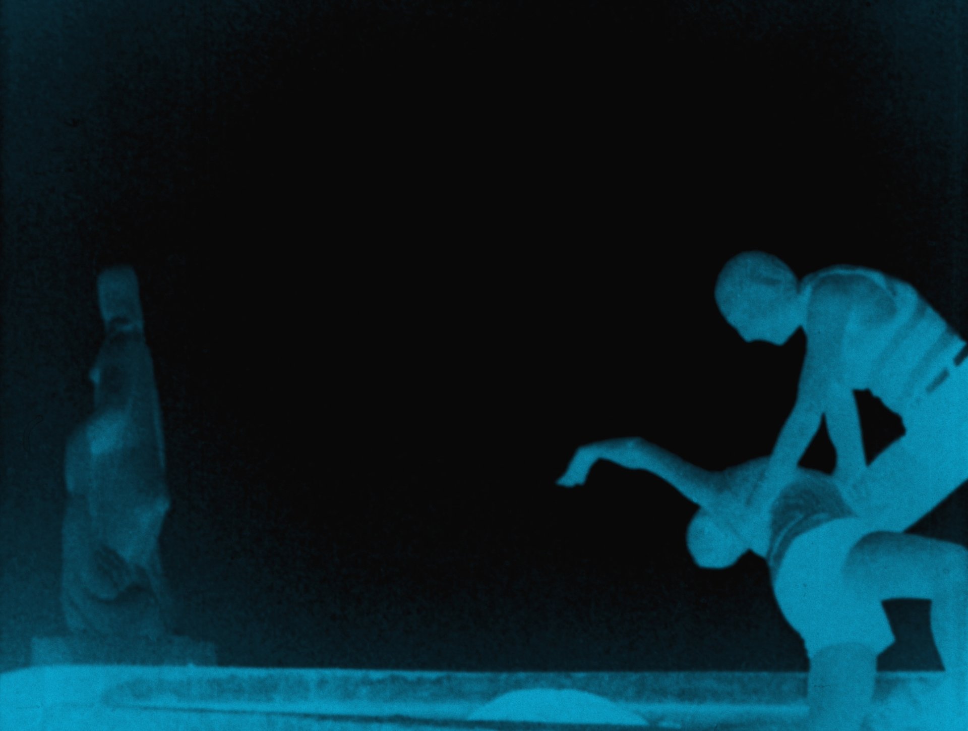 A day before its showing at the 1923 Dada-affiliated Soirée du Cœur à Barbe that was infamously disrupted by André Breton, Man Ray created his first film, the three-minute Le Retour à la raison, chiefly by sprinkling salt, pepper, pins and needles directly onto the celluloid and exposing it to light—a method he had developed in the still photos he called “Rayographs”. If the Rayographs make evident the materiality of the photographic image, Le Retour à la raison’s flickerings of light and movement also demonstrate its immateriality.