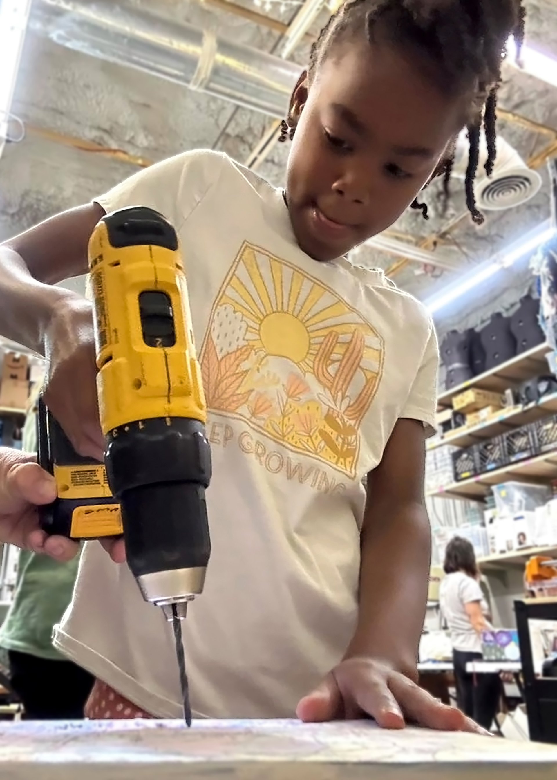 A workshop participant learning how to drill at The Welman in Fort Worth, Texas Photo by Taylor Williams