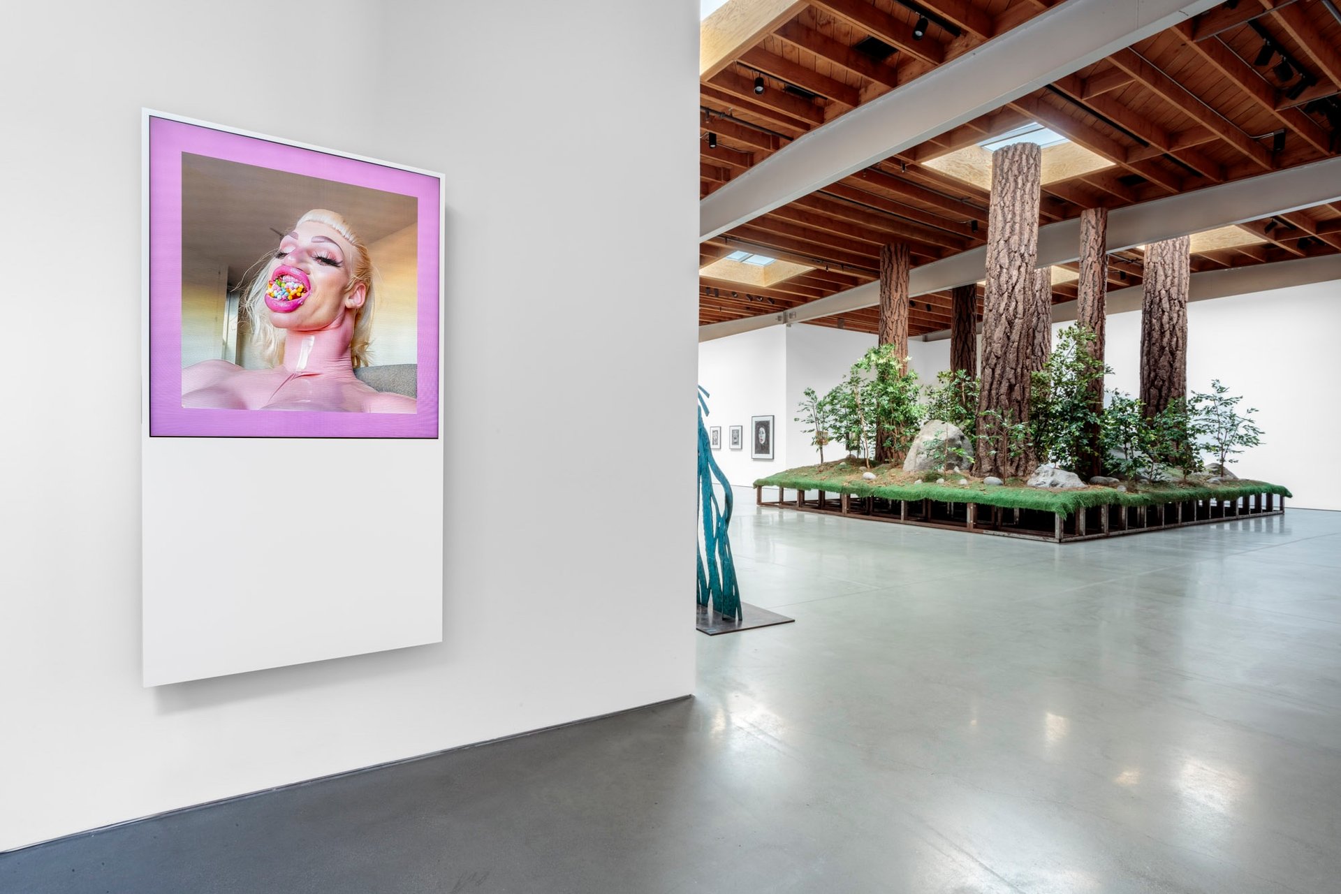 Installation view of Post Human featuring Chris Cunningham's Transforma (2024) at left Artwork © Chris Cunningham. Photo by Charles White / JW Pictures. Courtesy of the artist and Jeffrey Deitch, Los Angeles