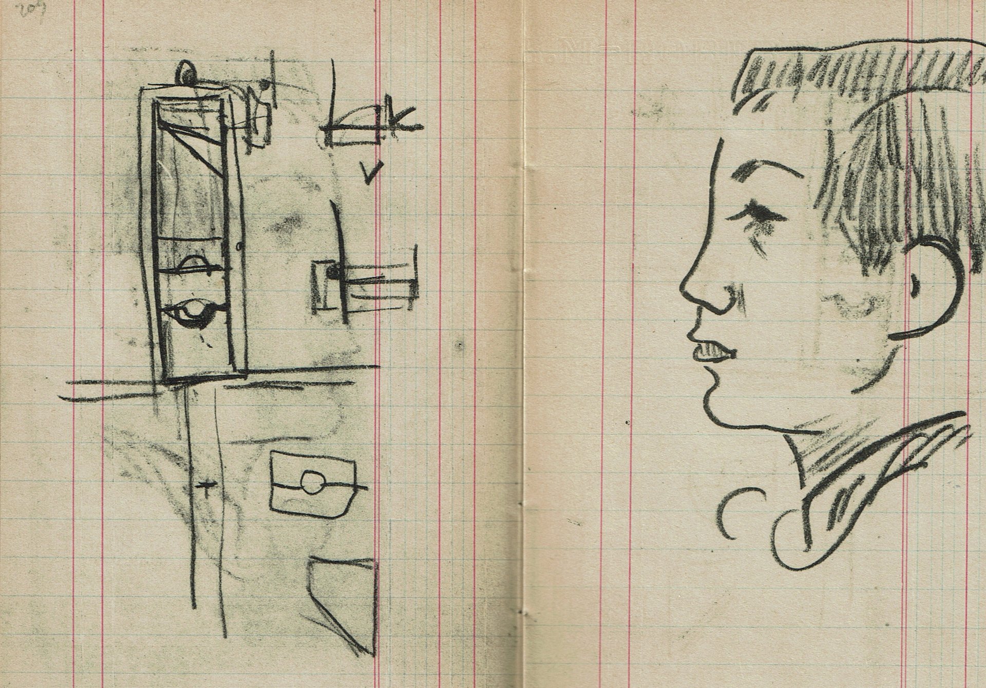 Paul Gauguin’s sketch of a guillotine, drawn opposite a head (probably 28 December 1888)