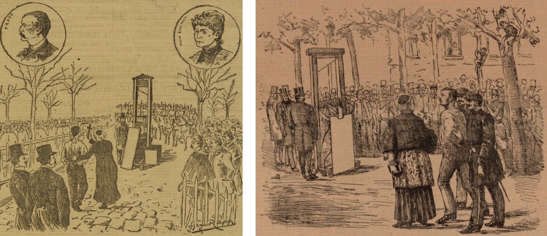 Newspaper images of the execution of Prado, 28 December 1888 Le Cri du Peuple (29 January 1889), Recueil: Assassinats et crimes divers (January 1889), L’Intransigeant (29 December 1888), and L’Univers Illustré (5 January 1889)