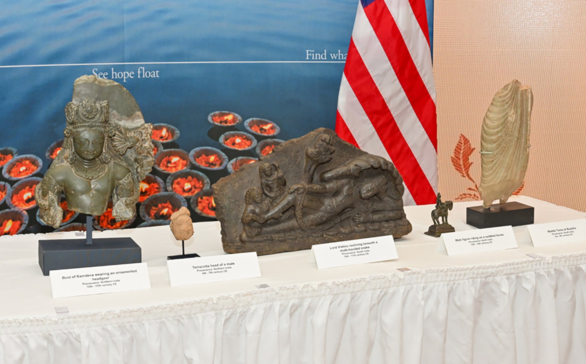 Artefacts on display during the repatriation ceremony at the Consulate General of India in New York Courtesy Manhattan District Attorney's Office