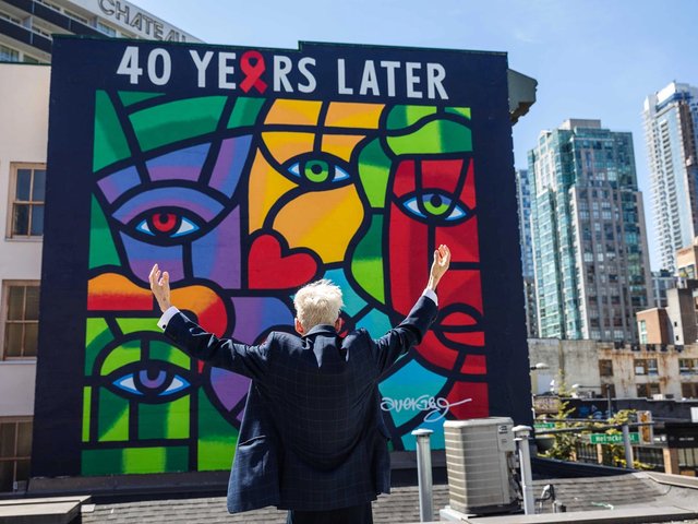 The same week as his 2021 mural marking the 40th anniversary of the first reported cases of Aids in the US was unveiled, Average was awarded the Order of BC, the province of British Columbia’s highest form of recognition.That mural, One World, One Hope—40 Years Later now adorns the North wall of Helmcken House, a residence in downtown Vancouver that provides affordable housing for people living with HIV and Aids.