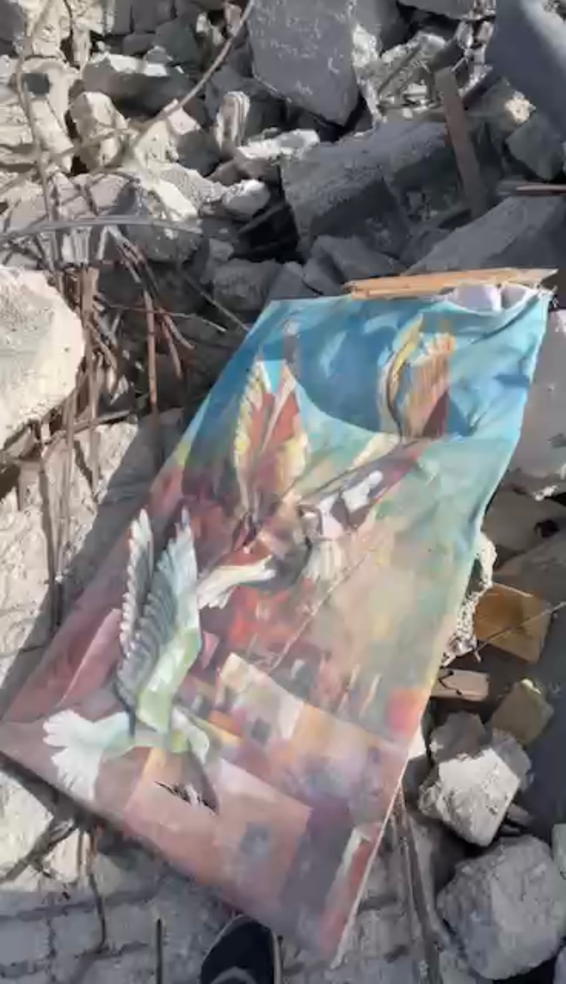 He managed to recover some winter clothes and two of his paintings from the ruins before returning to Deir al-Balah on Monday.