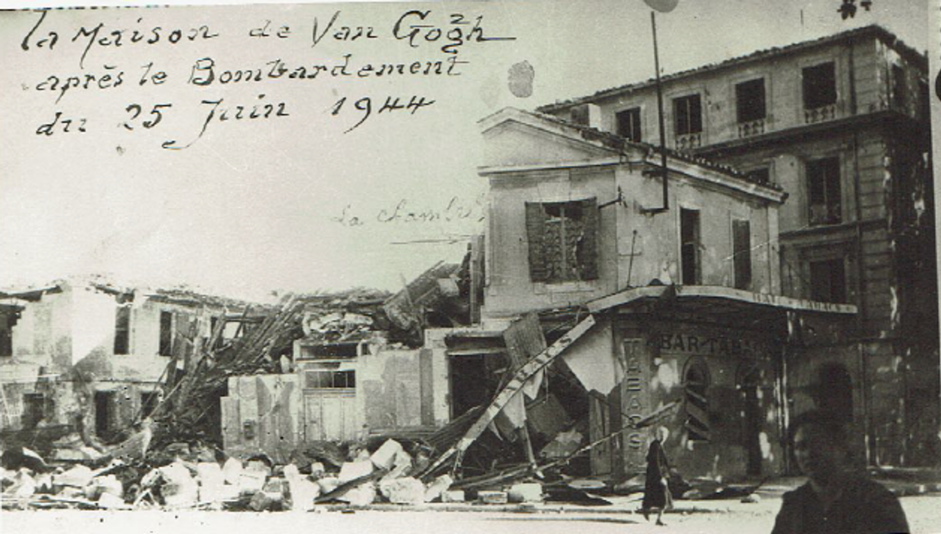 During the Allied bombing of Arles during the Second World War, the Yellow House was hit. Van Gogh’s bedroom on the upper floor (with the closed green shutters in the painting) was destroyed, although Gauguin’s adjacent room partly survived. Downstairs the walls of the studio and the kitchen suffered lesser damage. The building could have been saved, but instead it was simply demolished. Had the Yellow House been rebuilt, it would now rank among the most popular French tourist attraction outside Paris.