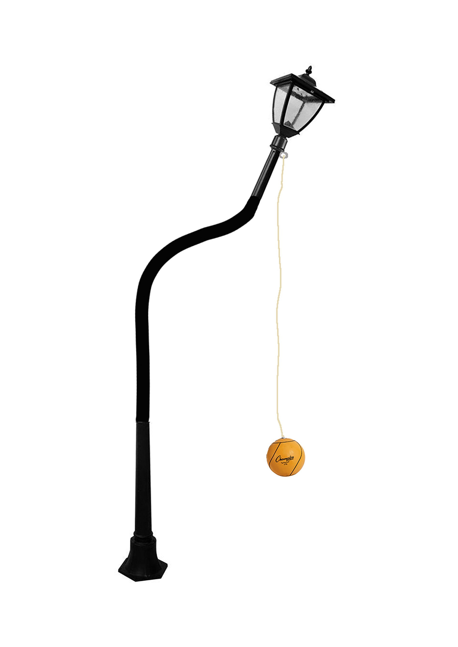 Kim Schoenstadt, Tetherball for Kippenberger (2020), steel, glass, nylon, and synthetic rubber, edition of 5 (working model) Courtesy of Beyer Projects
