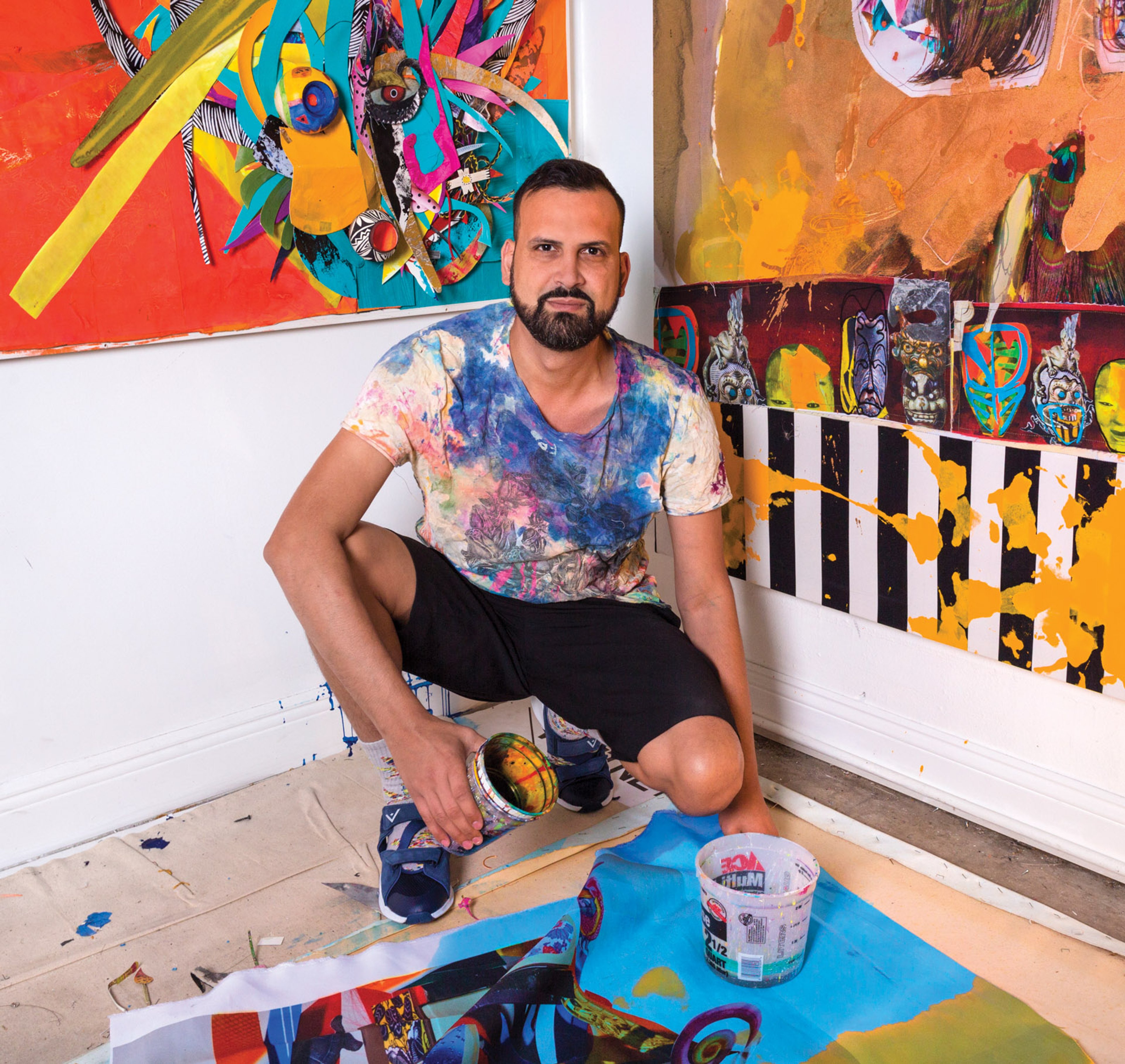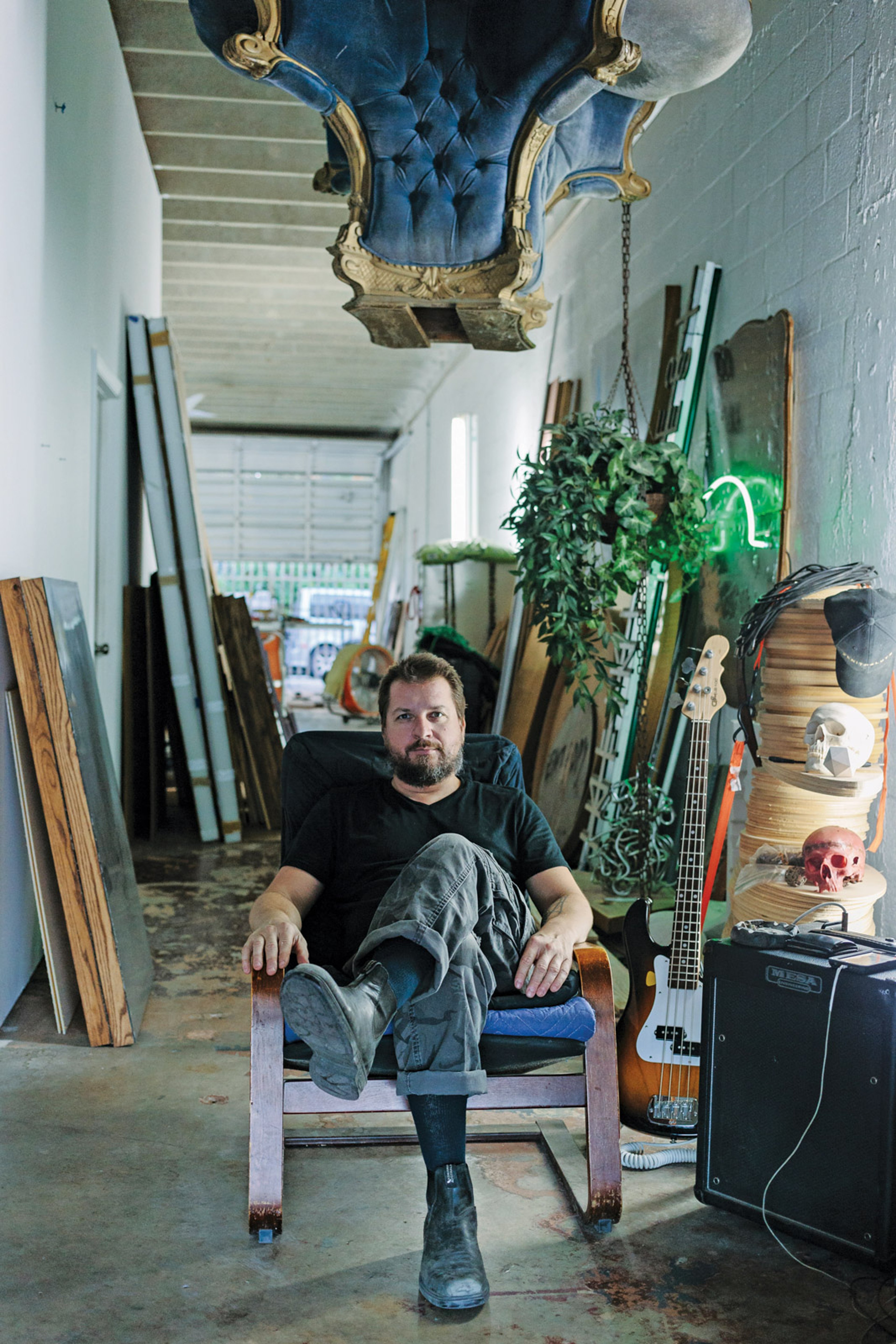 Pepe Mar: “My practice in sculpture and painting—which revolves around the processes of collage, assemblage and printing—makes it essential [to] have a studio… I have to have the space to collect objects from around the world, which may need to be housed for years until their best use comes to me with specific works.” Chris Hernandez; Courtesy of David Castillo Gallery