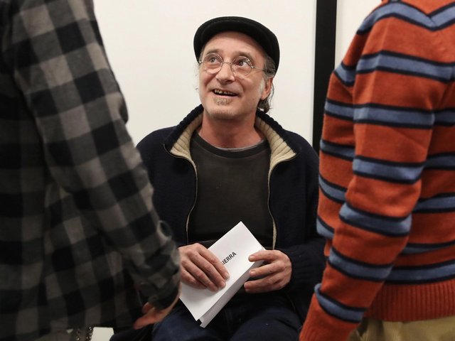 Tim Steiner, whose entire back is covered in an ink piece created by Wim Delvoye, will sit in the empty Mona museum until the end of April