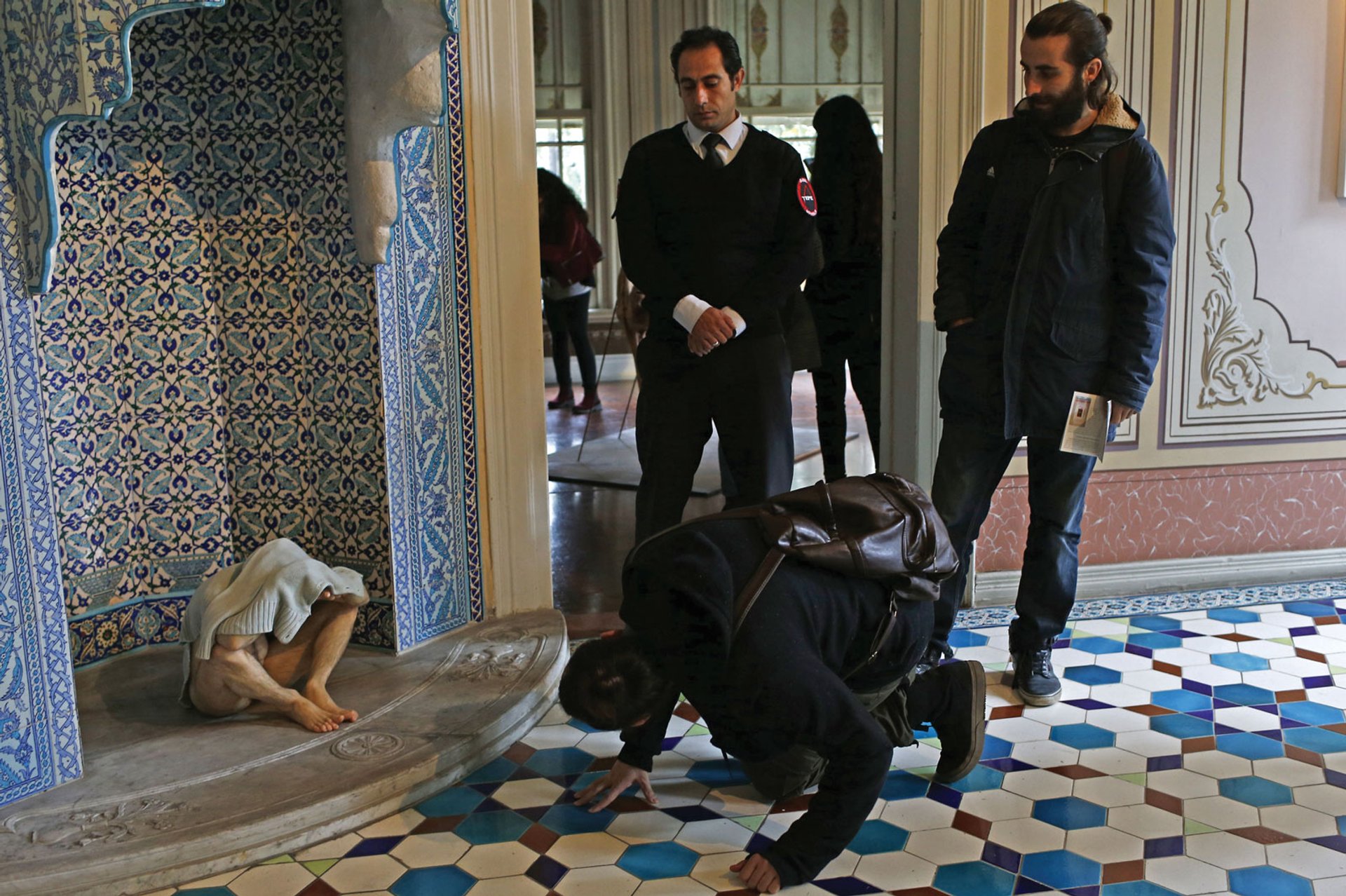 Meanwhile, a protest at a public exhibition in October demonstrates how Erdogan’s rhetoric has emboldened conservatives. Nude works in a show of the billionaire industrialist Omer Koc’s collection, called Doors Open to Those Who Knock, outraged Islamists, who said they denigrated the building in which they were displayed: a 19th-century mansion once owned by the last Ottoman caliph, Abdulmecid. A small group stormed the hall and attempted to damage the Australian artist Ron Mueck’s hyper-realistic Man Under Cardigan (1998), presented in a tiled fireplace the protesters mistook for a mosque’s mihrab, the niche that points worshippers towards Mecca.