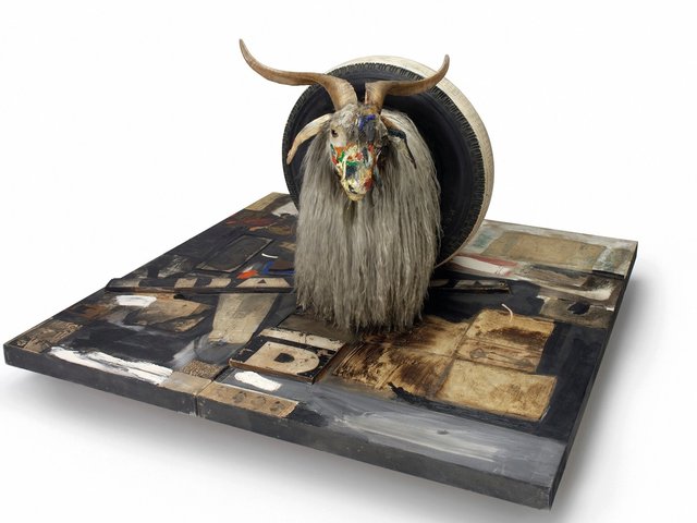 When the US artist and animal lover Robert Rauschenberg (1925-2008) saw a stuffed Angora goat in the window of a junk shop near his New York studio in 1955, he knew he had to have it. The shopkeeper wanted $35 for it, Rauschenberg paid $15 on account and, when Calvin Tomkins’s biography of the artist was published in 1980, he had yet to return to pay off the balance. The animal is a key component of his work Monogram (1955-59): a goat, standing on a painting, with a painted face and a rubber tyre around its middle.