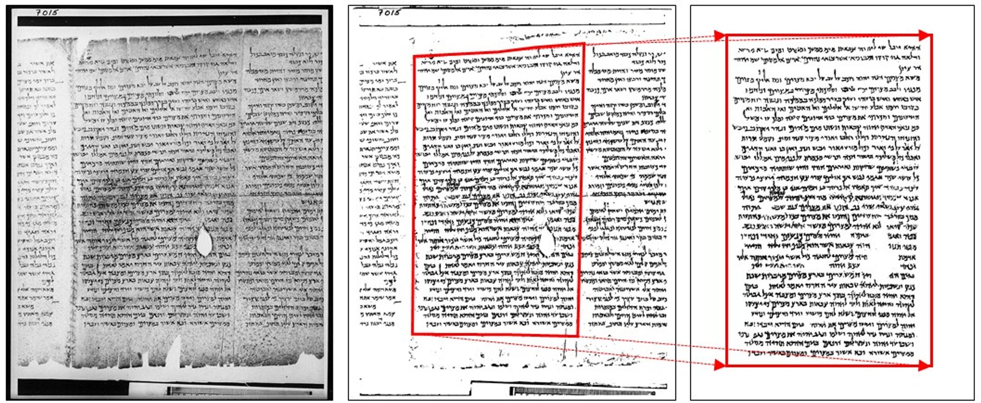 From left to right: greyscale image of column 15 of the Great Isaiah Scroll, the corresponding binarized image using BiNet, and the cleaned-corrected image Reprinted from Lim TH, Alexander PS. Volume 1. In: The Dead Sea Scrolls Electronic Library. Brill; 1995 under a CC BY license, with permission from Brill Publishers, original copyright 1995