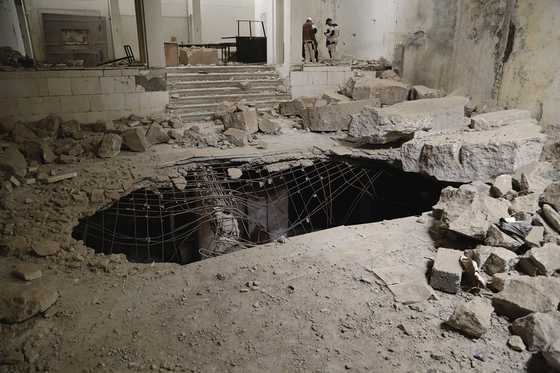 A gaping hole at the Mosul Museum in Iraq that was repaired during the first phase of a joint restoration project there © Smithsonian Institution