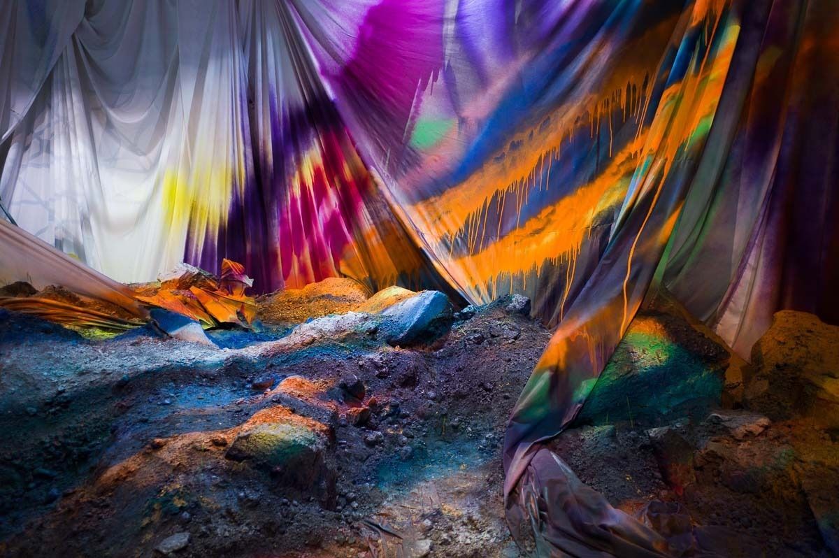 Thom Merrick's contribution is a green table counterpointed by palm trees from a Christmas crib; no problems for Martin Puryear since he always works with wood, or Pat Steir who matches her painting to the environment with coloured waterfalls and fountains. There is also room for more restful types of painting: these include photographs by the god-like Richter, pointillisms by the Australian Tim Johnson, branches of trees by Vladimir Kokolia, and ornamental calligraphy by the Hungarian Mitja Tusek. Even cold, photographic neo-objectivity has a more appealing and relaxed face in the group of old pals painted by Thomas Struth. At the other end of the scale, Kawamata's wooden huts standing among age-old plants decompose with true Japanese biodegradable lightness, and are reflected in the waters of the ancient canal.