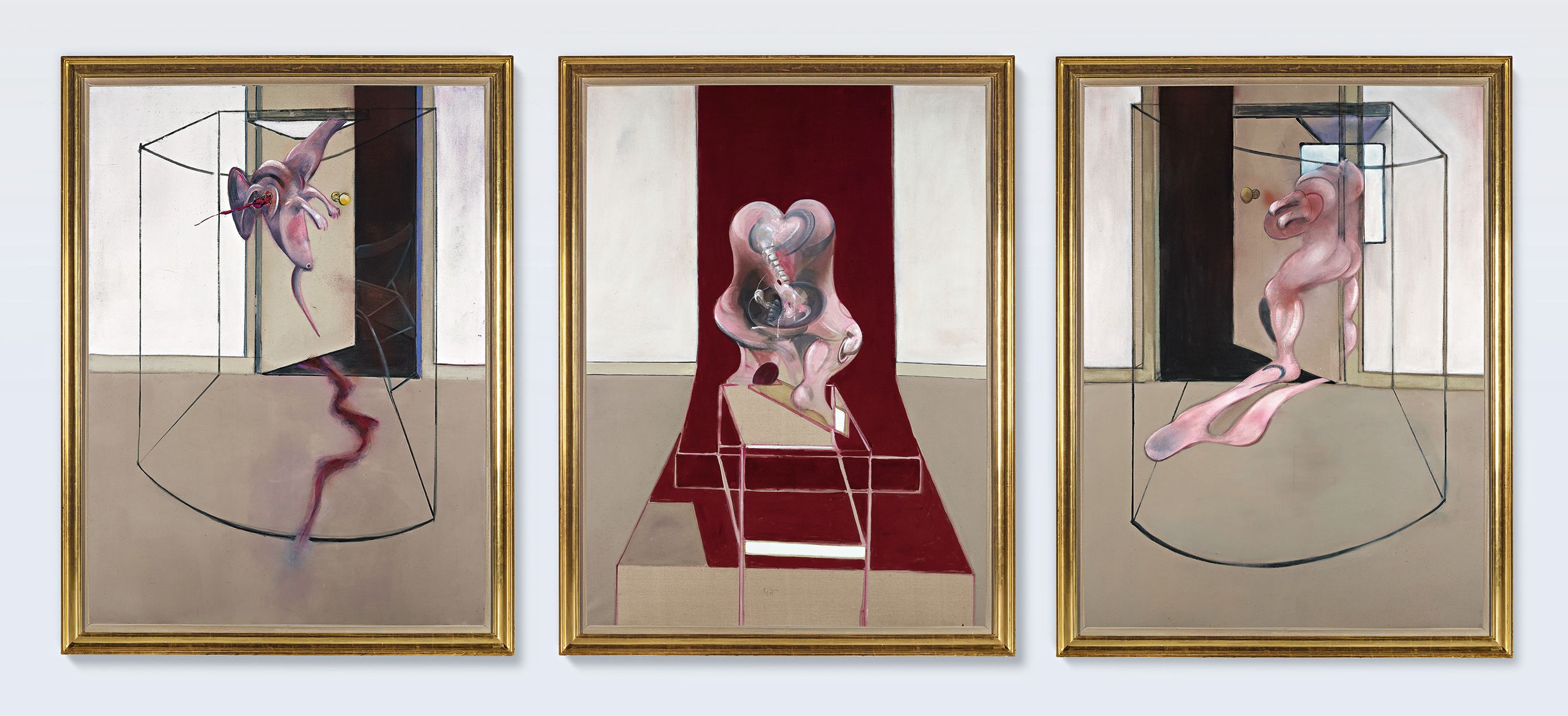 The Bacon Triptych purchased by Mr Abramovich was consigned to Sotheby’s by the Moueix family, owners of Château Pétrus, one of the world’s most expensive Bordeaux wines. In March we revealed that they had owned it since it was bought from a show in Paris at the Galerie Claude Bernard in 1977, where it was illustrated on the cover of the catalogue. It has figured in many major exhibitions of Bacon’s work.