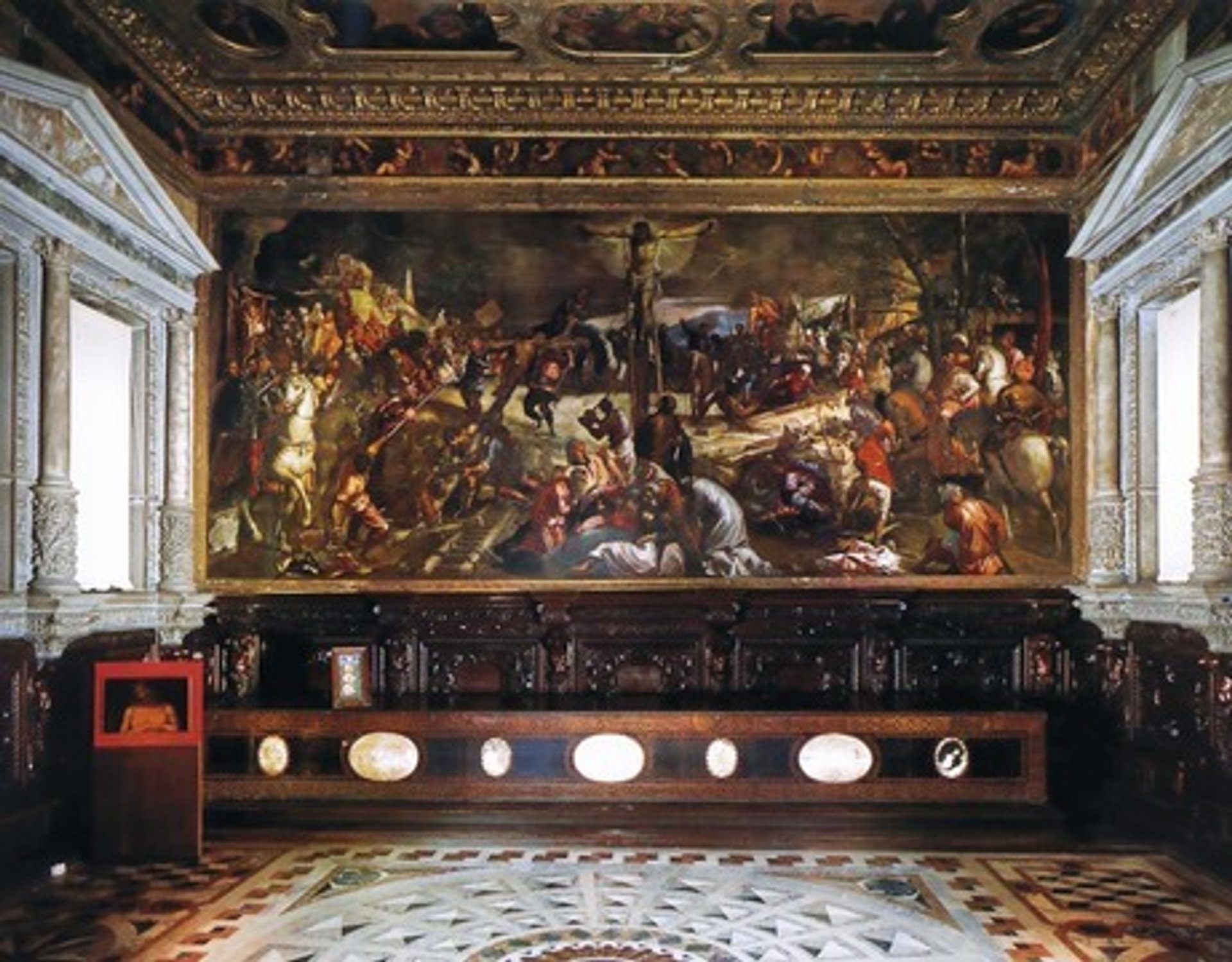 Renaissance drive-in cinema Tintoretto then secured the commission to decorate the rest of the Scuola, which he worked on for more than a decade. In the enormous Sala Superiore, for example, virtually every painted surface is by him (and all are on canvas). But his undoubted masterpiece is the enormous Crucifixion, painted in 1565. It is said that, rather than make preparatory drawings, Tintoretto sometimes used small models of wax or clay, which he would arrange in artificial light. In the Crucifixion, the lighting is theatrically over the top—like a Renaissance drive-in cinema.