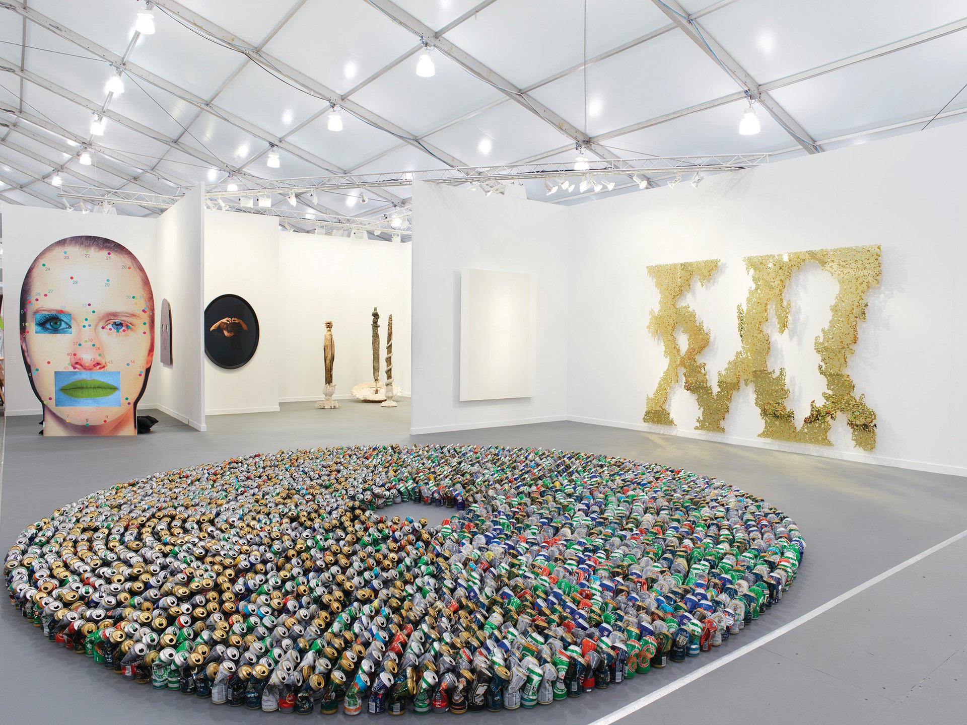 A swirl of beer cans—2,978 in total—is turning heads at Frieze New York. This circle of tin has not, however, been placed in the trash, but is on view at the stand of Lehmann Maupin. Halam Tawaaf (2008), by the French-Algerian artist Kader Attia, may well bring to mind the movement of pilgrims about the Kaaba, the sacred building in Mecca. But some visitors see its more practical aspects. “A few people have asked us if we actually drank all that beer,” a gallery representative deadpanned.