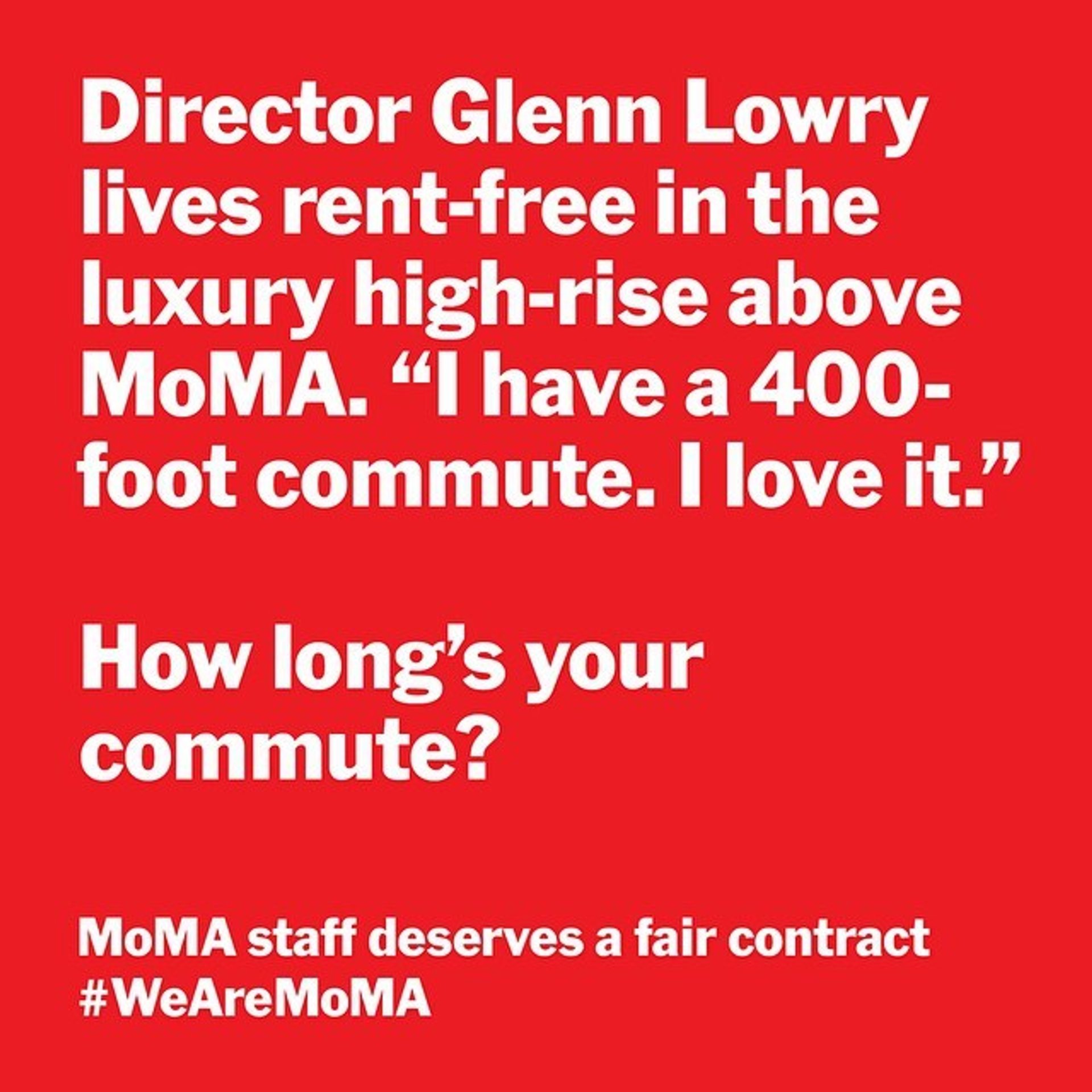 Because negotiations are on-going, MoMA declined to comment on specifics but said in a statement: “The Museum of Modern Art has an outstanding staff. At this time, we are in the process of negotiations with Local 2110, and are optimistic that we will reach a positive outcome for the staff and all concerned.”