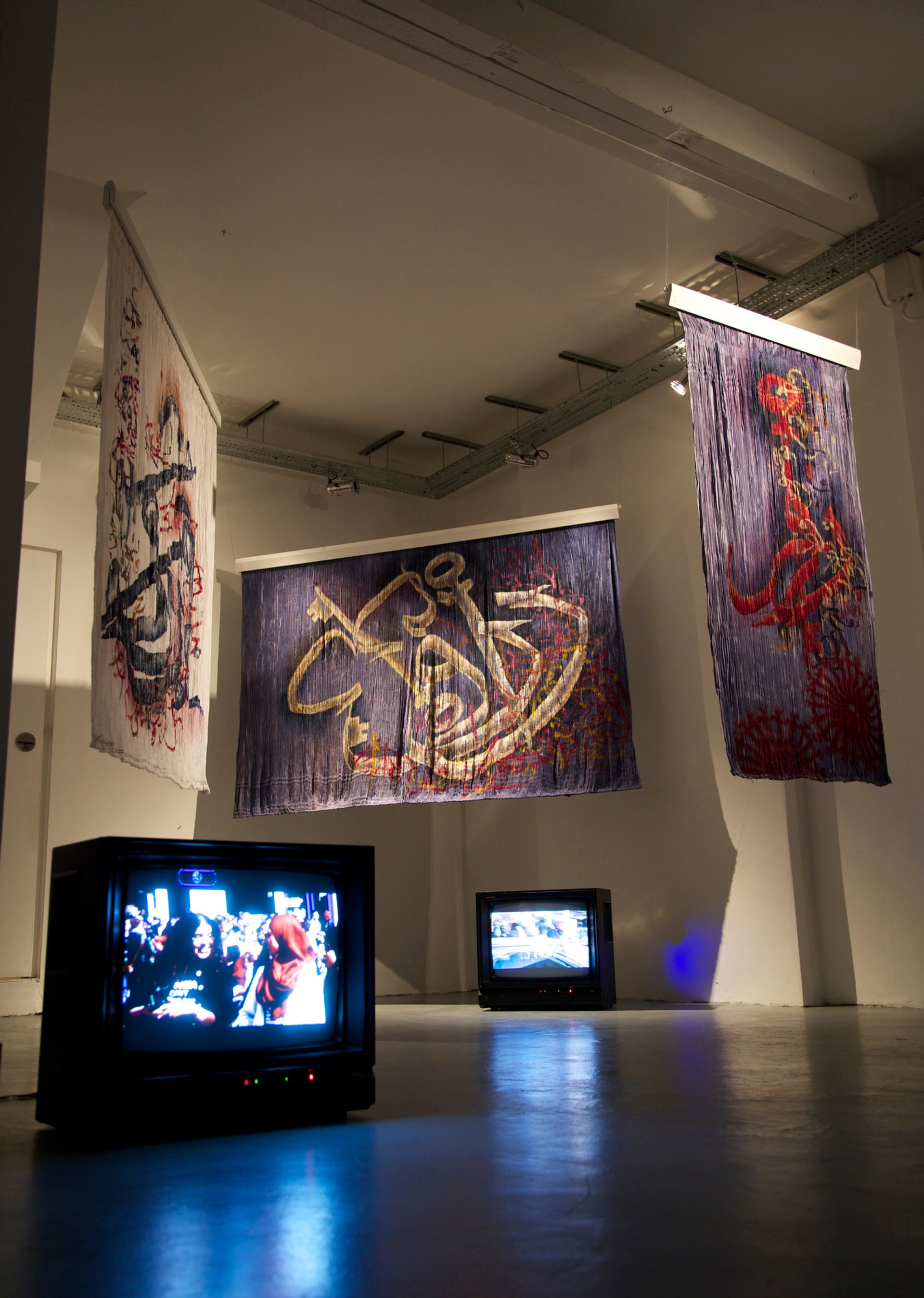 Now, her first solo show in the UK, Beyond the Veil: a Decontextualisation, is at Art Represent in London (until 27 August), a gallery dedicated to presenting works by artists from conflict regions. The exhibition includes new works: three burqas that have been pleated into curtain-like hangings and painted with the key-shaped symbol that appears in her graffiti. The words for “safety”, “education” and “happiness” are written in Arabic calligraphy on the fabric, while a video piece shows Suliman herself clad in a burqa, walking through a city street in the Netherlands.
