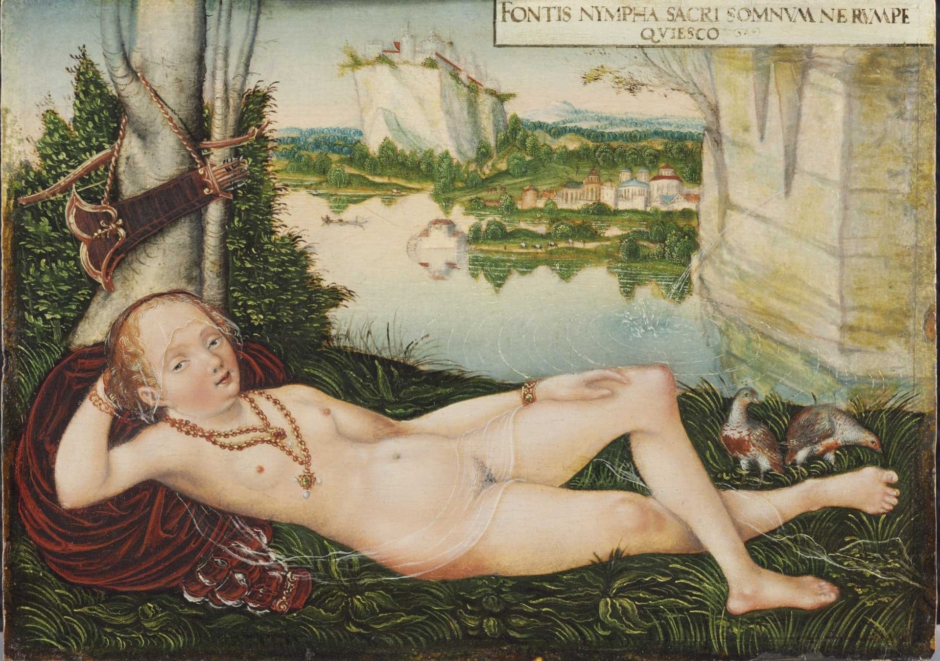 Alongside all this, Cranach still had to supply the needs of the court. Recreational subjects included Venus with Cupid as a Honey Thief (1530) or The Silver Age: Quarrel of the Wild Men and Maternal Solicitude (1527-35), or the charming Resting Nymph of the Spring (1533). Paintings and prints of hunts and tournaments document the life of the court. Official portraits, both of members of the ruling family and of key allies such as Landgrave Philip the Magnanimous of Hessen were also still required on a regular basis.