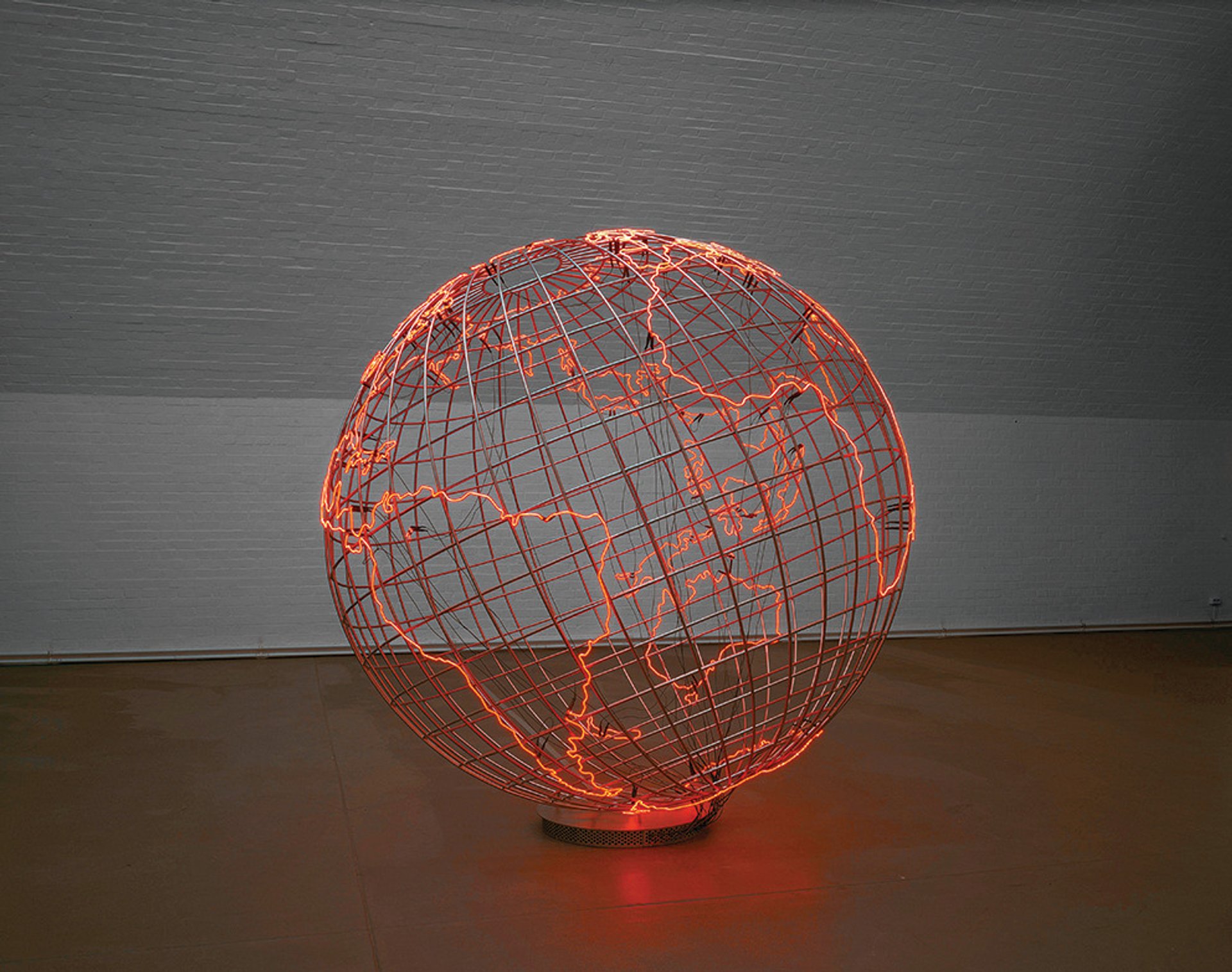 In 2006 I made a work called Hot Spot. It’s a globe made of steel rods with red neon delineating the contours of the continents on its surface. This work implied that the whole world is a political hot spot caught up in war, conflict and unrest—that war and conflict are not restricted to certain areas but something that affects the world as a whole. This is still the way I would portray the map of the world today.