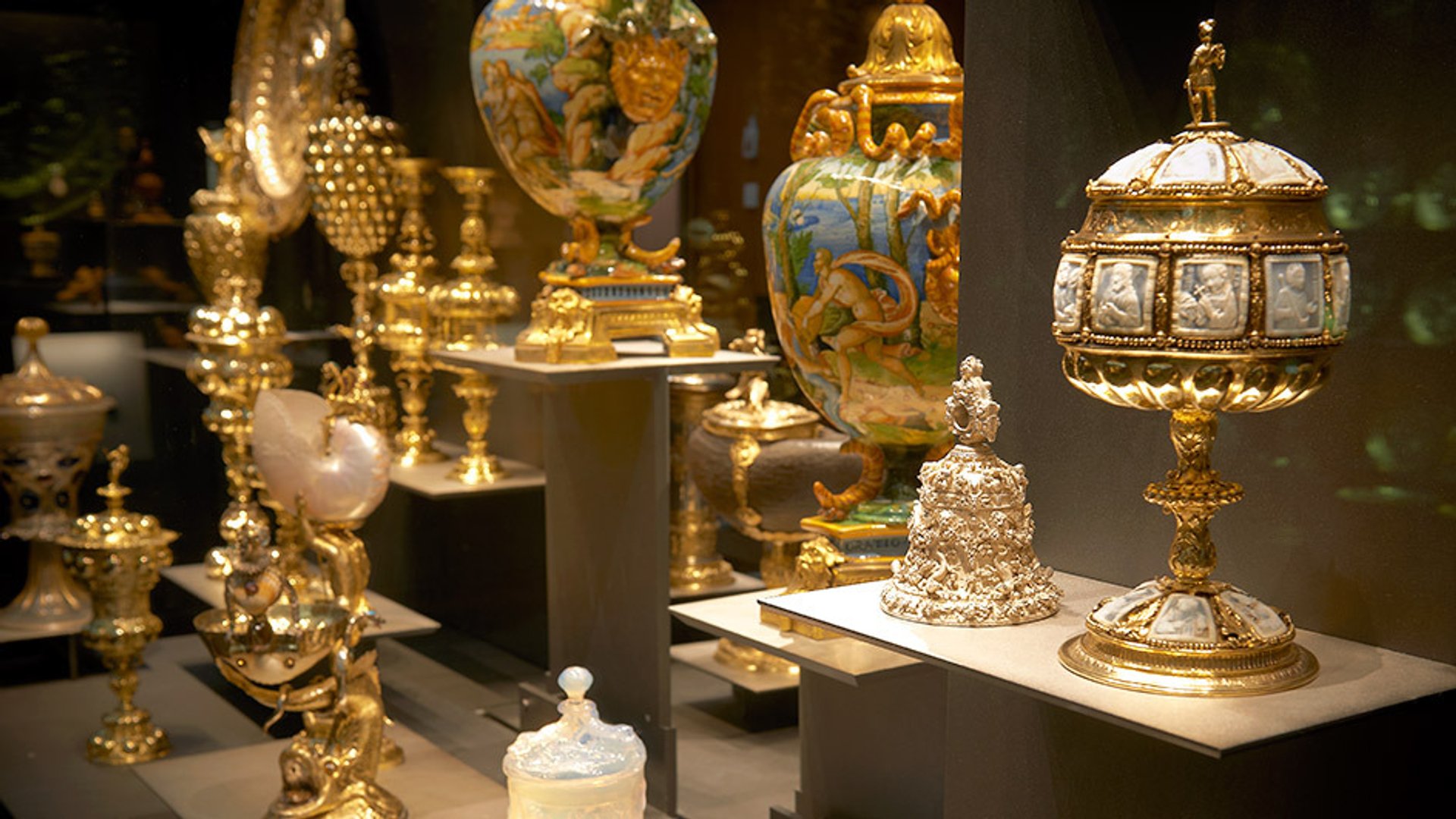 Treasures from the Waddesdon Bequest have been housed since 2015 in a refurbished gallery at the British Museum funded by the Rothschild Foundation. The famous mid-16th-century "Cellini" Bell, second right, was wrongly attributed to Benvenuto Cellini by one of its previous owners, Horace Walpole. Baron Ferdinand de Rothschild, the source of the bequest, rightly attributed the bell to the Nuremberg silversmith Wenzel Jamnitzer Courtesy: British Museum
