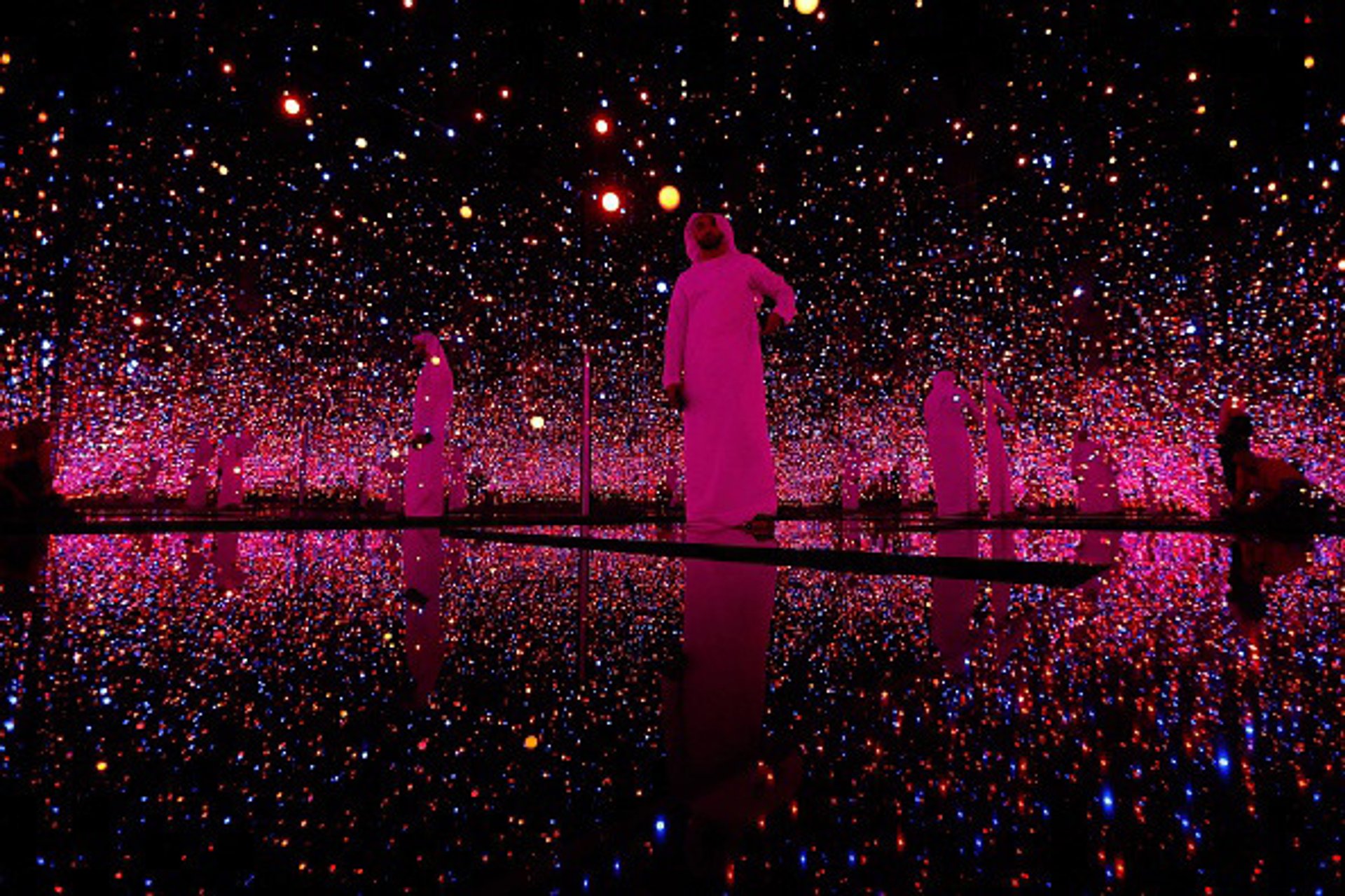 Acquired: Museum Boijmans Van Beuningen, Rotterdam (1965/98 version); Fondation Louis Vuitton, Paris (1965/98 version); Hara Museum of Contemporary Art, Tokyo (1991 version); Mattress Factory Pittsburgh (Repetitive Vision, 1996, is on long-term loan); Matsumoto City Museum of Art, Japan (2001 version); Whitney Museum, New York (Fireflies on the Water, 2002); Queensland Art Gallery, Gallery of Modern Art, Brisbane (Soul Under the Moon, 2002); Phoenix Art Museum (2005 version); Louisiana Museum of Modern Art, Denmark (Gleaming Lights of the Souls, 2008); Guggenheim Abu Dhabi (2011 version); Garage Museum of Contemporary Art, Moscow (Infinity Mirrored Room–The Souls of Millions of Light Years Away, 2013); and the Broad Art Foundation, Los Angeles (Infinity Mirrored Room–The Souls of Millions of Light Years Away, 2013).
