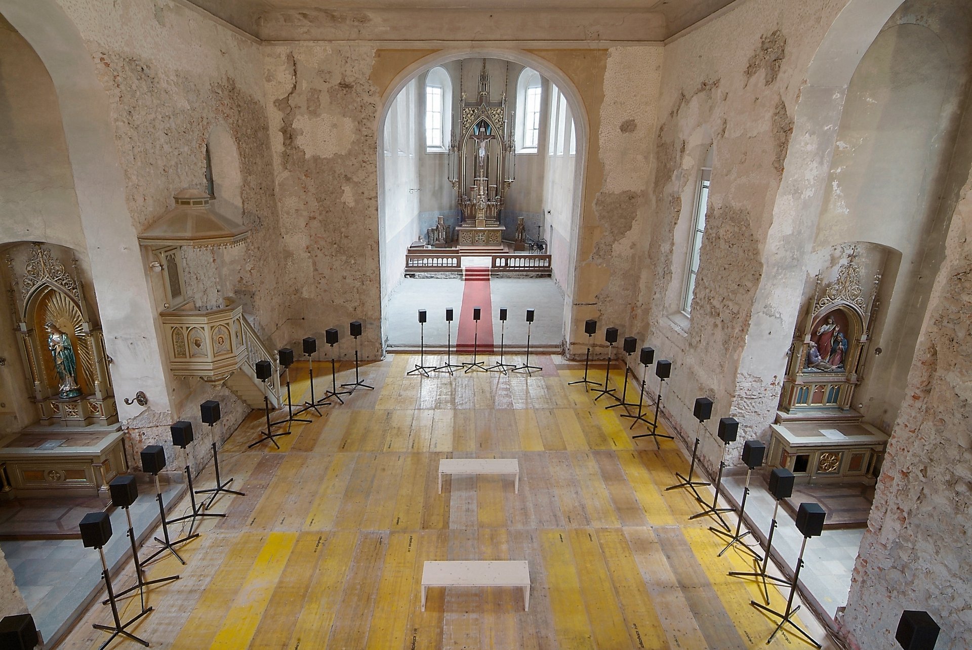 Janet Cardiff, The Forty Part Motet The work: Made in 2001, the piece is a recording of Tudor composer Thomas Tallis’s 1575 choral piece, Spem in Alium, played on 40 hi-fi speakers, each one transmitting the voice of a single singer. The speakers are arranged in a large oval so visitors can hear individual voices or move into the centre of the piece to listen to the ensemble.