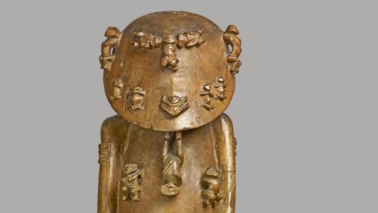 Items, from Tahiti to the Cook Islands, range from carved fan handles with double-headed figures, to an octopus lure made of cowrie shells, as well as the first dictionary of the Tahitian language, and the "feather gods". Seemingly insignificant clusters of feathers and wood bound with sennit, or coconut string, with no hint of human figuration, these idols are “absolutely foreign to the Western eye”, King says.