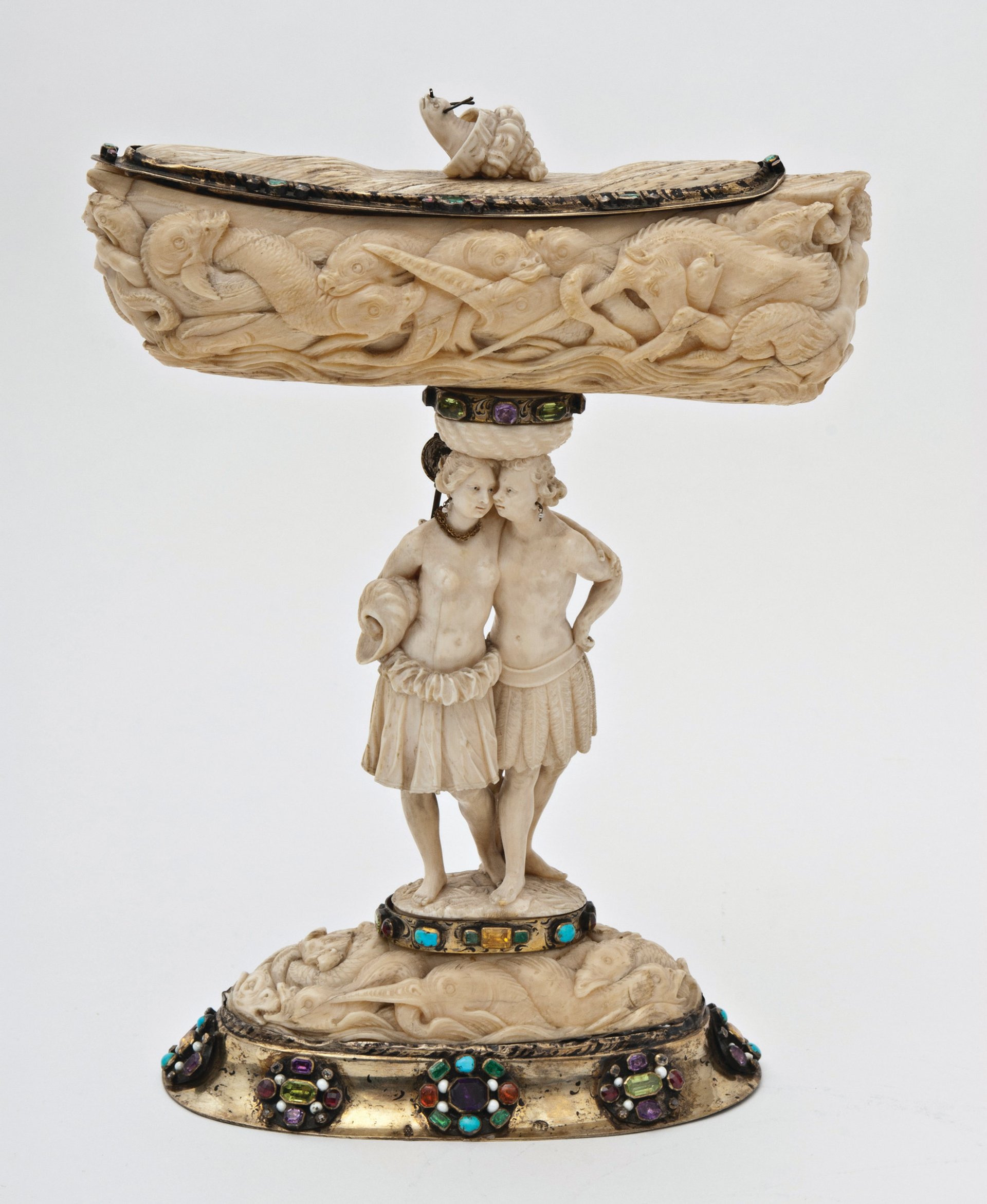 We don’t know who carved this cup, for whom it was made or who owned it before it surfaced in Vienna in the late 19th century. But when I found it three years ago, I immediately wanted it for our new Kunstkammer gallery. We know that the bowl and base were carved from the long projecting tooth of a small Arctic whale called a narwhal. However, many of the cup’s early owners probably believed that it was carved from the horn of a unicorn and so held magical, protective powers.
