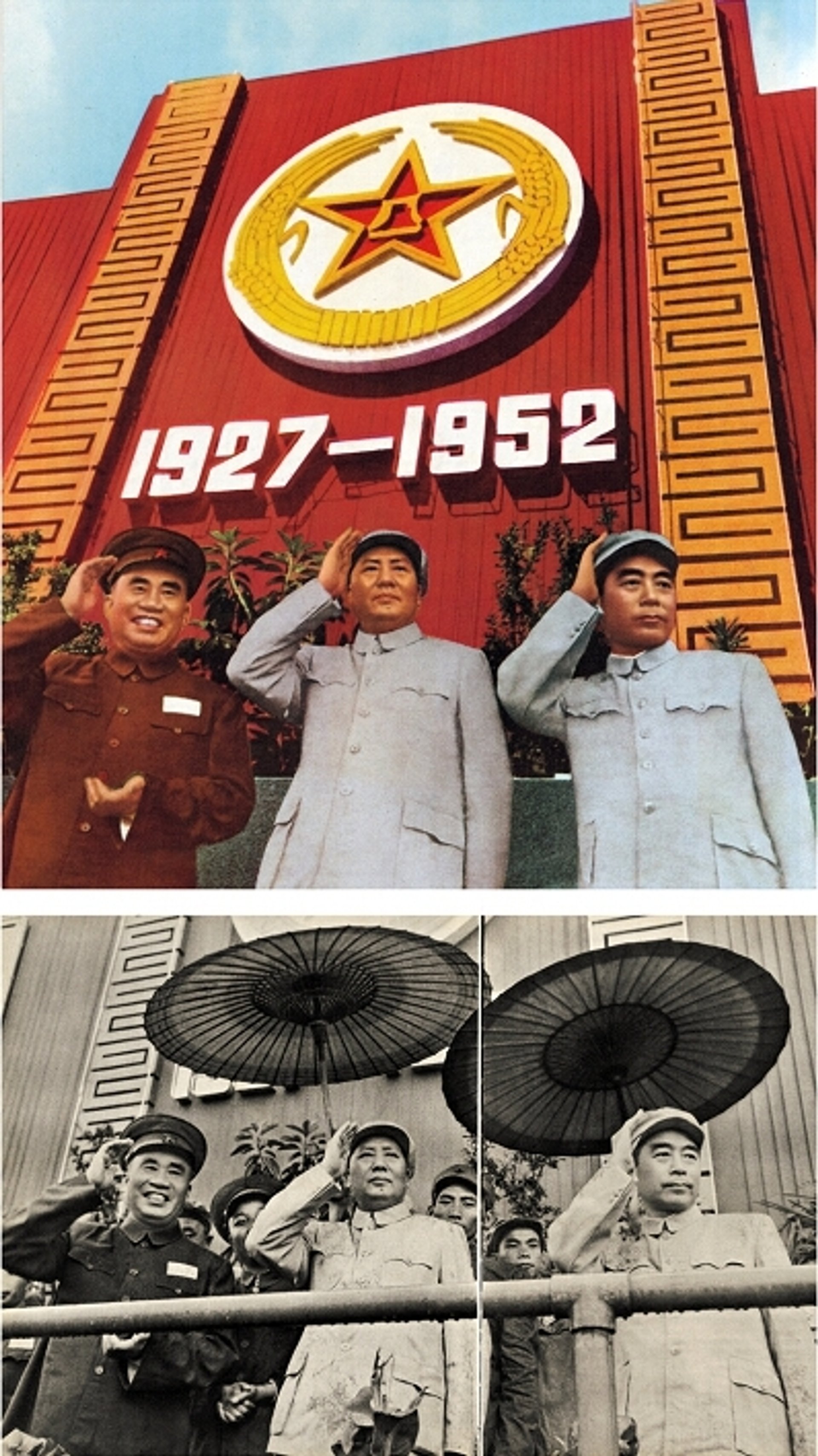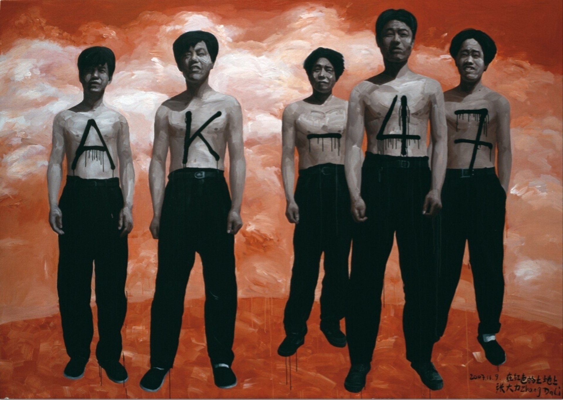 In the 1990s, he created graffiti under the pseudonym AK47 lamenting the demolition of ancient Beijing by drawing outlines or carving images of his own bald head onto condemned Hutong walls. His series Chinese Offspring in the 2000s, grotesquely realistic sculptures of migrant laborers often dangling from the ceiling like hanged men, expanded his focus on the human condition in Chinese cities. His paintings that superimpose government slogans on top of Cultural Revolution and Tiananmen Square imagery and his Second History project that presents doctored propaganda photos next to their originals has hardly endeared him to officials, prompting yet more shuttered exhibitions. But he continues to show in China frequently, albeit carefully.
