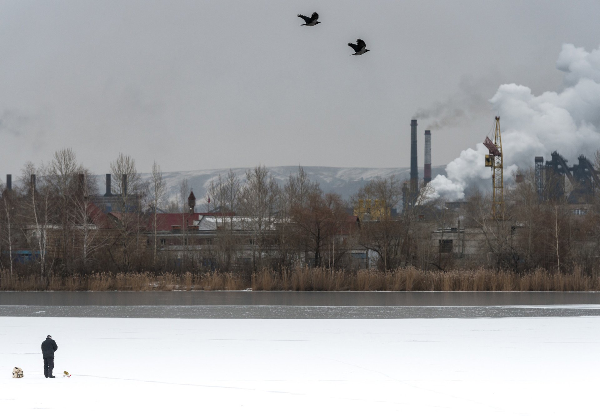 Foreigners need special permission to enter Norilsk, which is vetted by the Federal Security Service (successor to the KGB), so that part of the Nadezhda project was limited to a Russian photographer, Elena Chernyshova, and a sculptor, Dmitry Kawarga. One of Chernyshova’s photographs depicts a blood-red sign spelling out Nadezhda in Russian—like a Norilsk version of the Hollywood sign—with snow-covered ground and a factory, smoke-spewing pipes and blue skies in the background.