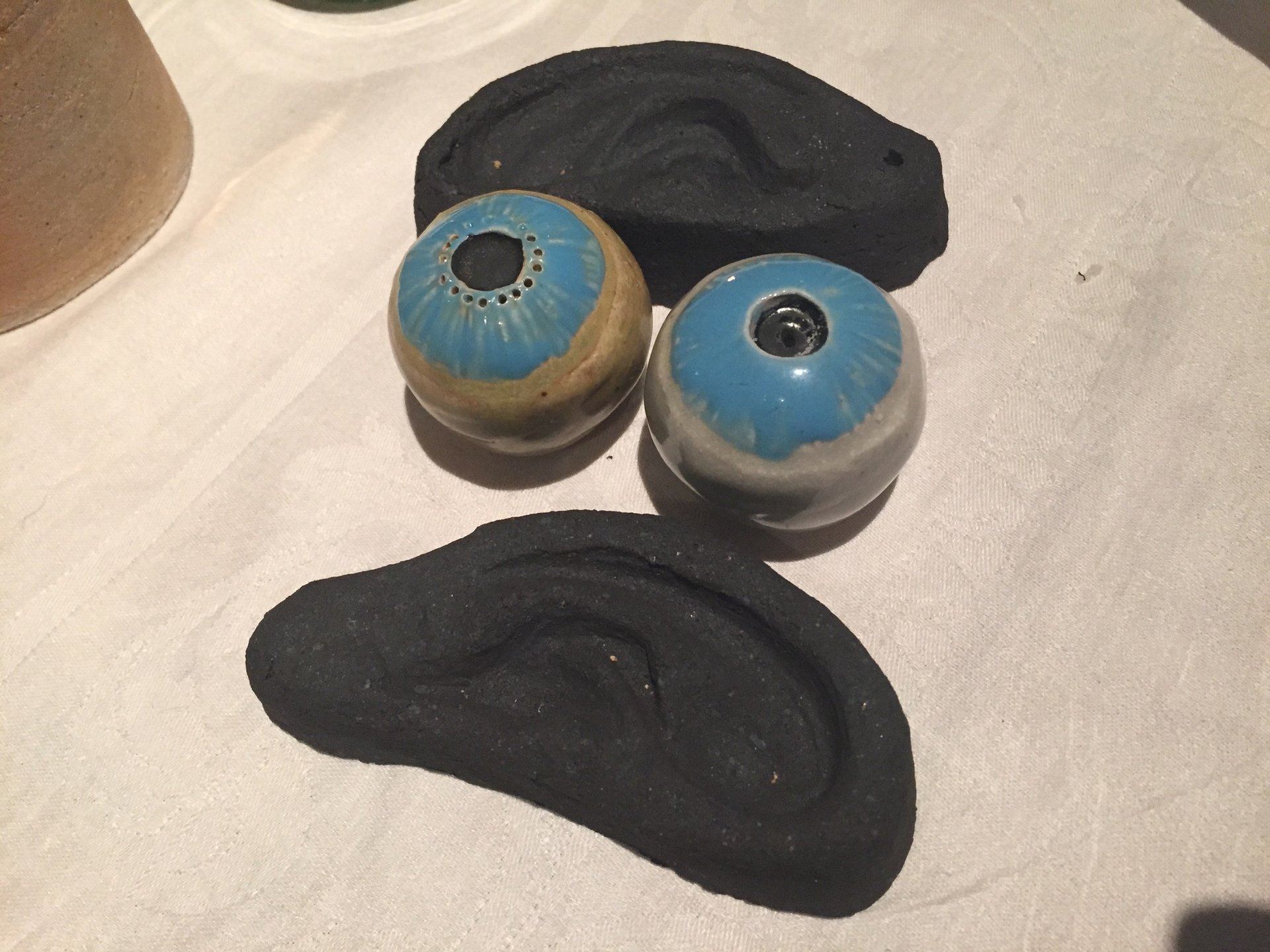 These included Laure Prouvost’s body table and containers (I was especially fond of the breast bowl covers and eyeball-shaped salt and pepper shakers) and Bedwyr Williams’s head shaped pickle jars. Among the items on the menu—sourced and cooked up by the participating artists and Grizedale Arts director Adam Sutherland—were brain pickles, breast milk curd and damson preserves in the shape of Williams’s ear. Thankfully there was also some rather less gastronomically challenging borscht and nabe stew. Yum, Yum.