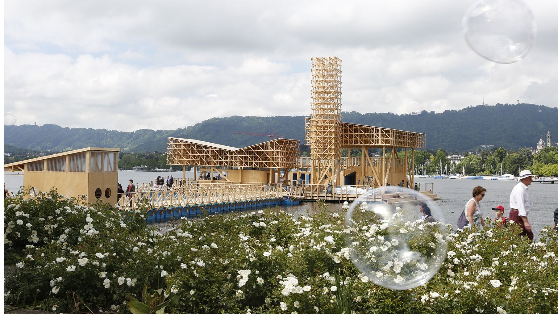 One of the most striking venues will be the Pavilion of Reflections based on Lake Zurich near Bellevue. The floating platform, which will be constructed by students from the ETH Zurich university, incorporates a swimming pool and a screening area where visitors can view films documenting the production process behind certain works.
