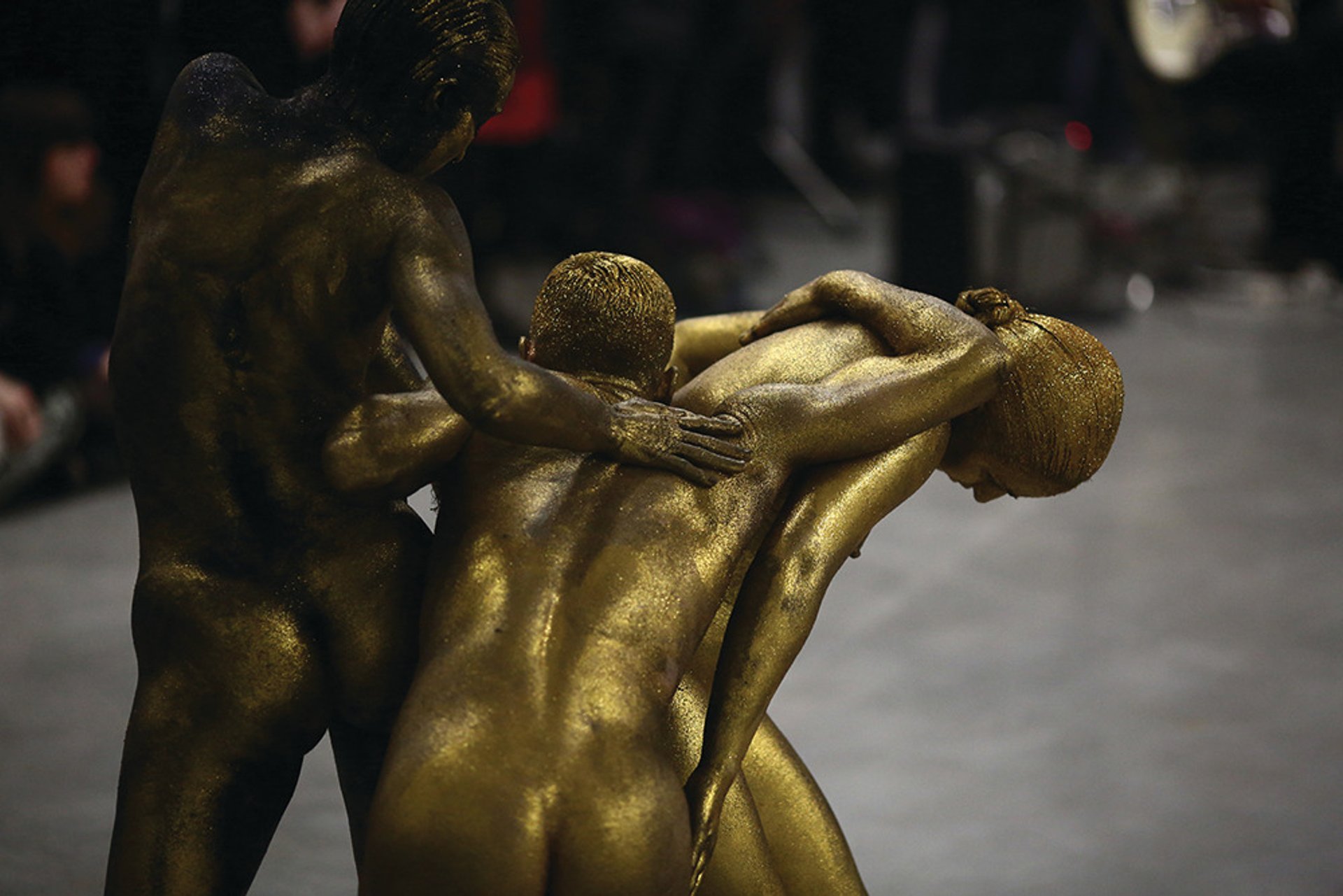 “Sometimes it just feels as though everything comes together and slots into place like a jigsaw puzzle, and I had that experience with this work. It was the culmination of a number of performances that I’d made in recent years, specifically at the Tate and at the Chisenhale Gallery. It was the apex of that lineage of work: a large ensemble of actors, dancers and musicians and a narrative structure devised out of rehearsals. It was an hour long. Four of the dancers were painted from head to toe in gold and three in black; the three musicians wore black clothes but had painted faces. It was my first solo commission in New York, and I can’t convey the extent to which I felt horrifying, anxiety-inducing levels of pressure. The great and the good of the New York art world came and I felt as though it was all set up for me to fail, but the stars aligned and everything worked, most importantly in terms of my feelings about the piece.”